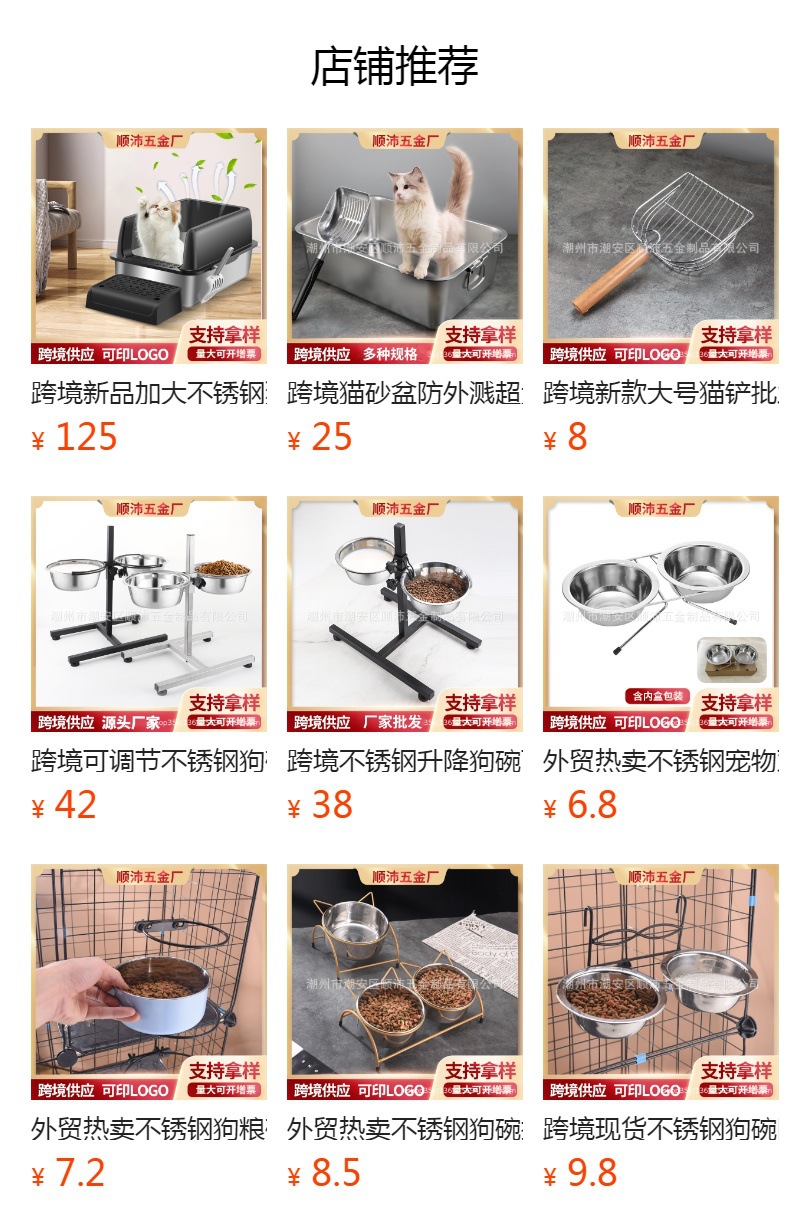 목 보호 및 높은 애완 동물 그릇 도매 애완 동물 용품 개기구 철 랙 안티 노크 개 분지 스테인레스 스틸 고양이 그릇스토어 가기