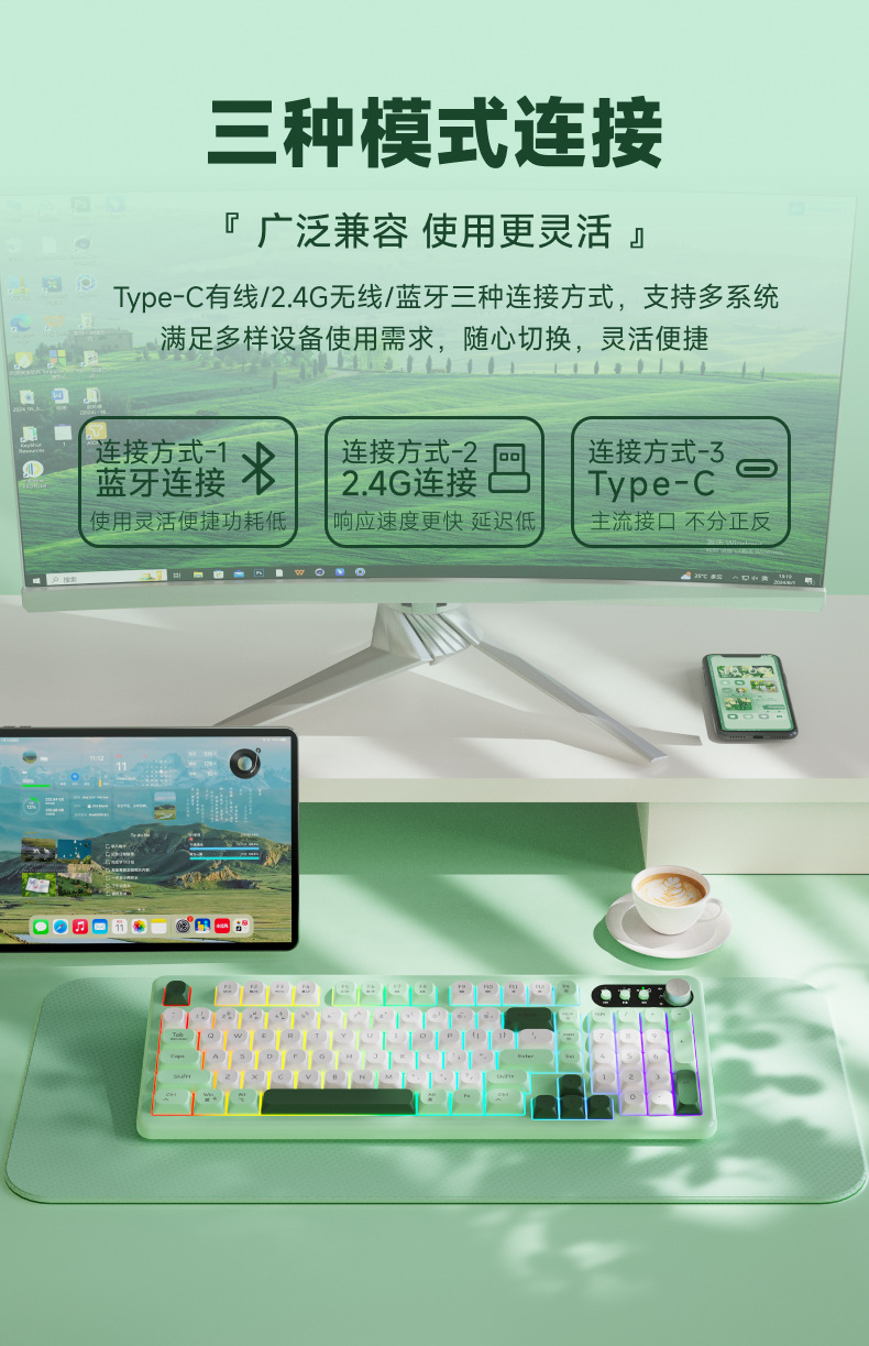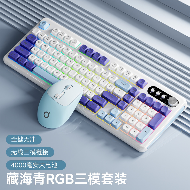 • 레이크 블루 파우더--RGB--[유선 + Bluetooth + 2.4G]-3가지 모드