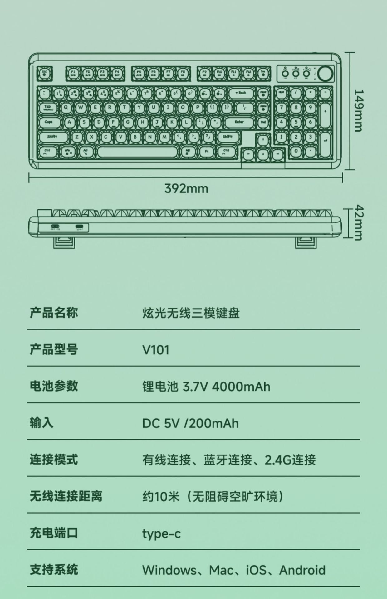 샤오광 V101 무선 블루투스 기계식 느낌의 무소음 사무용 3모드 키보드 마우스 세트 컴퓨터 게임 e스포츠