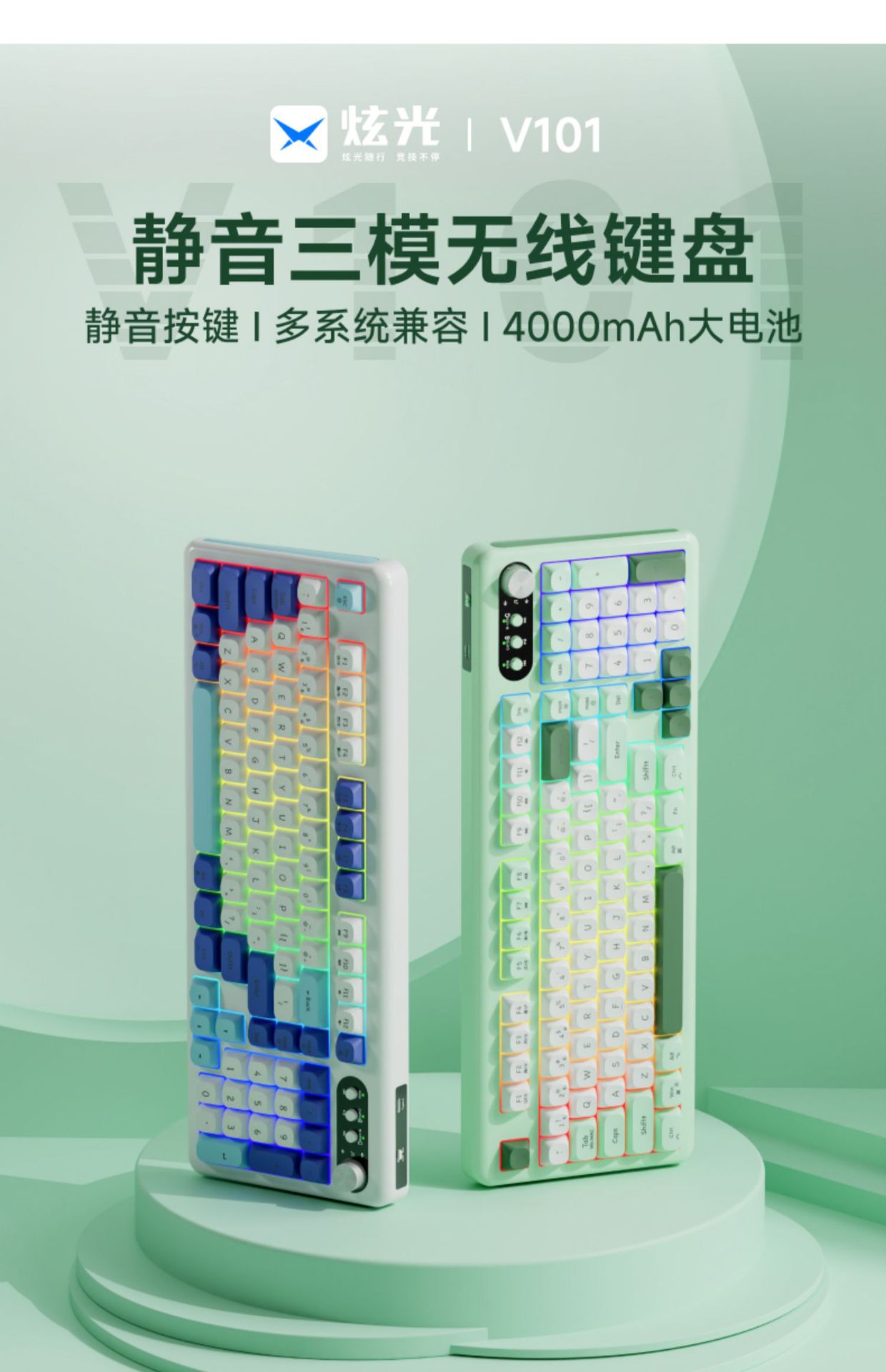 샤오광 V101 무선 블루투스 기계식 느낌의 무소음 사무용 3모드 키보드 마우스 세트 컴퓨터 게임 e스포츠스토어 가기