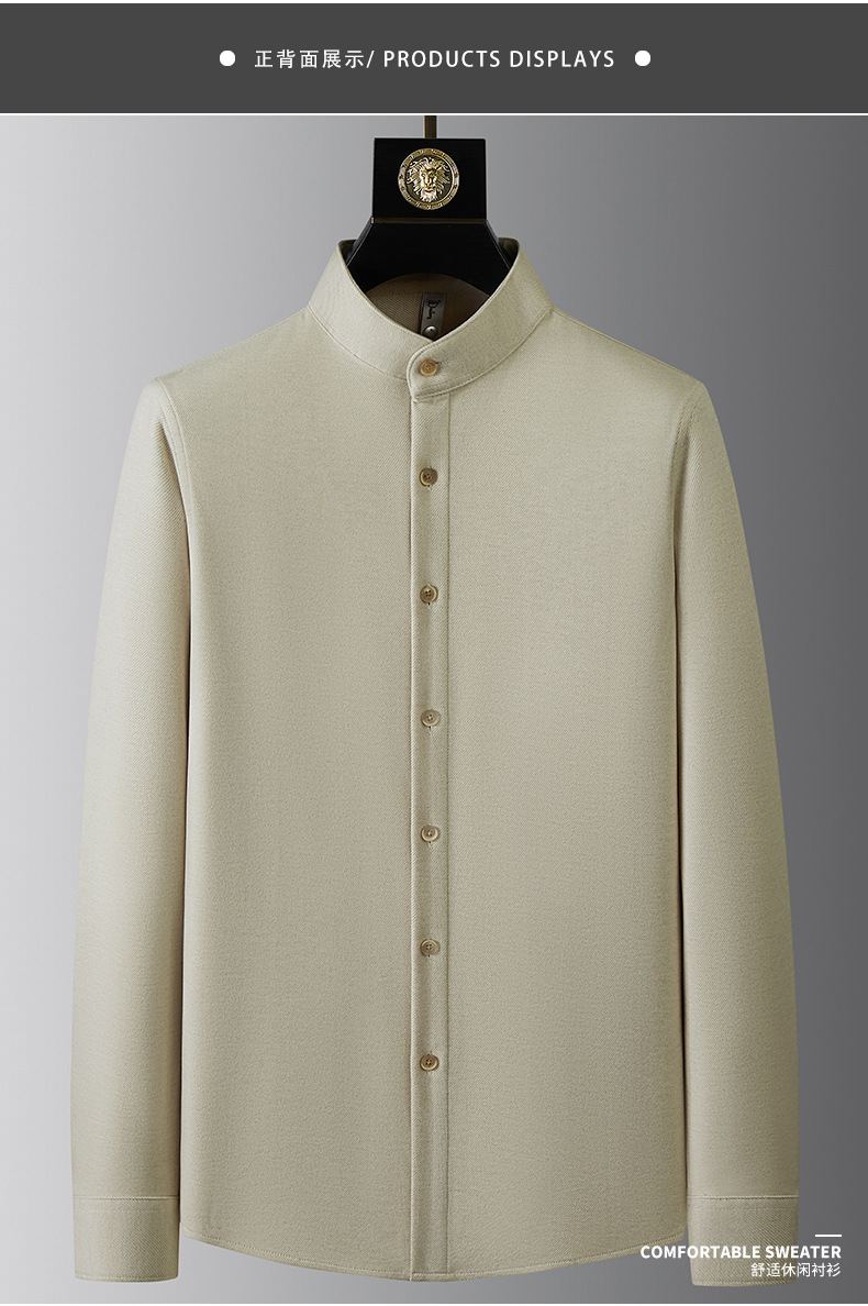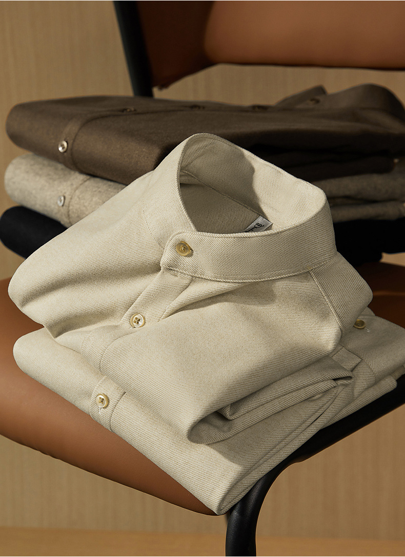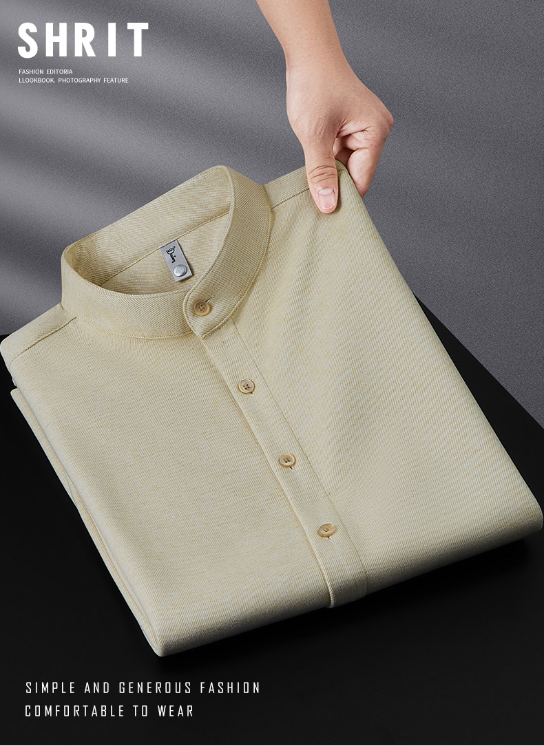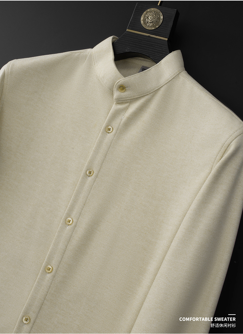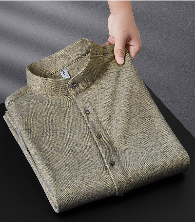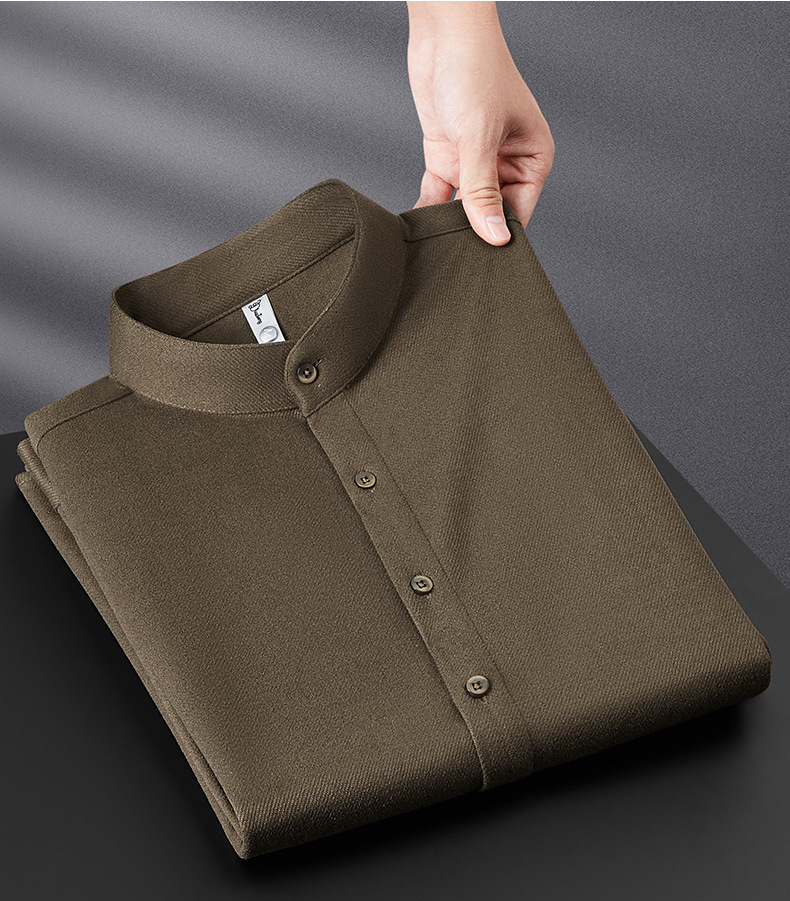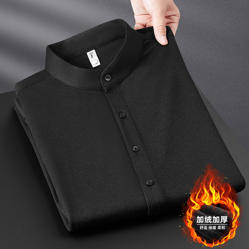 하이 엔드 기모 두꺼운 스크러스트 울 칼라 셔츠 남성용 긴팔 슬림 핏 겨울 캐주얼 따뜻한 중국 튜닉 세트 셔츠스토어 가기