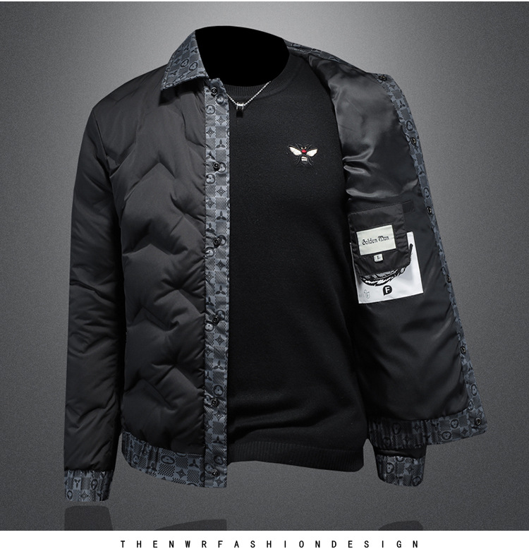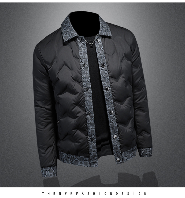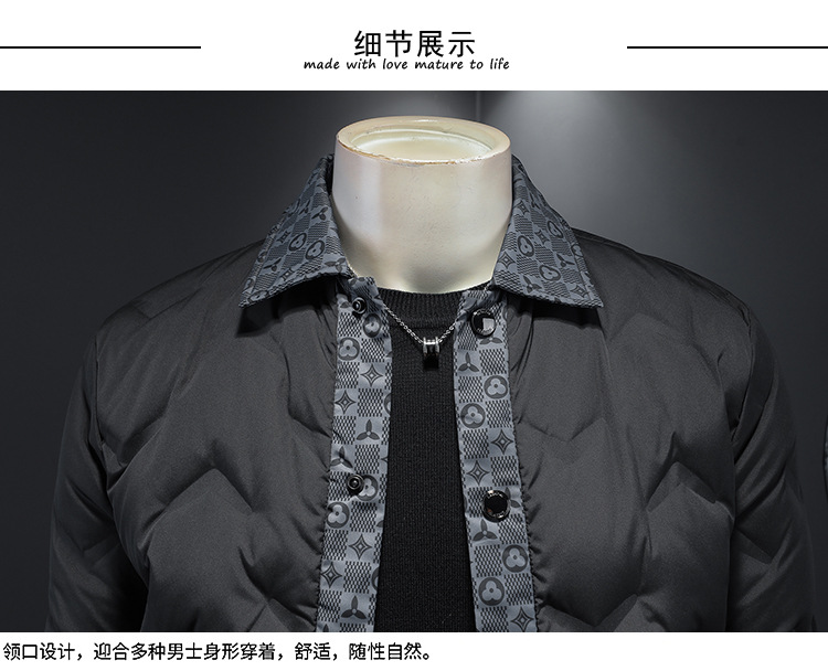 유럽 스타일 패션 남성용 다운 재킷 얇은 라펠 보온 코트 2024 겨울 신상 남성복 트렌드 인기 상품스토어 가기