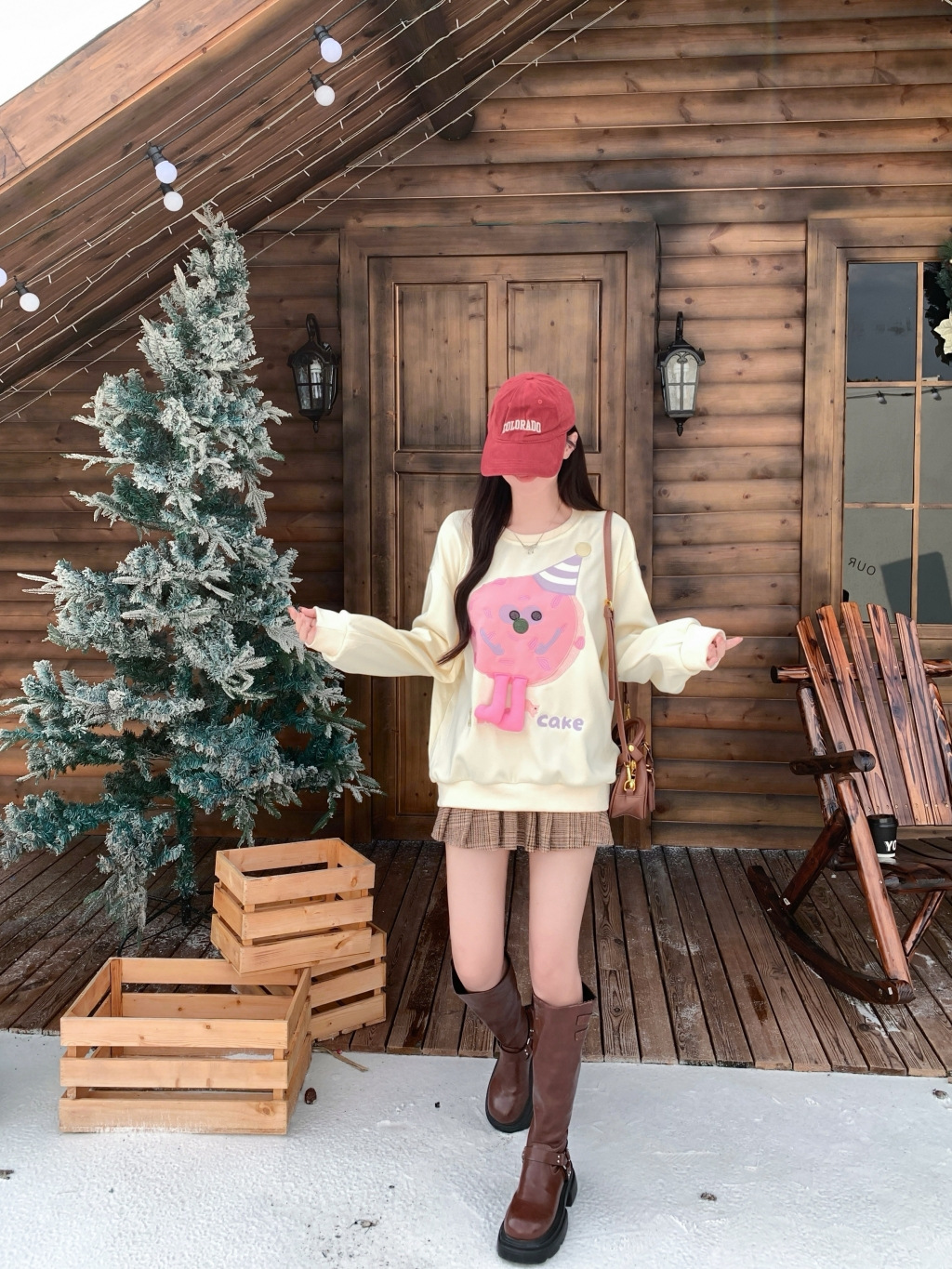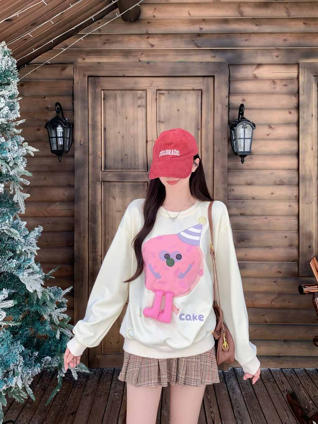 달콤한 나이를 줄이는 긴팔 스웨트 셔츠 여성의 가을과 겨울 새로운 디자인 센스 중공업 만화 자수 느슨한 기모 탑스토어 가기