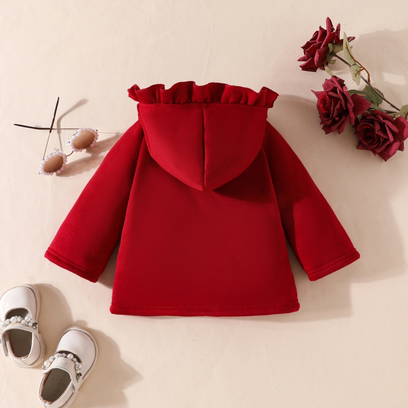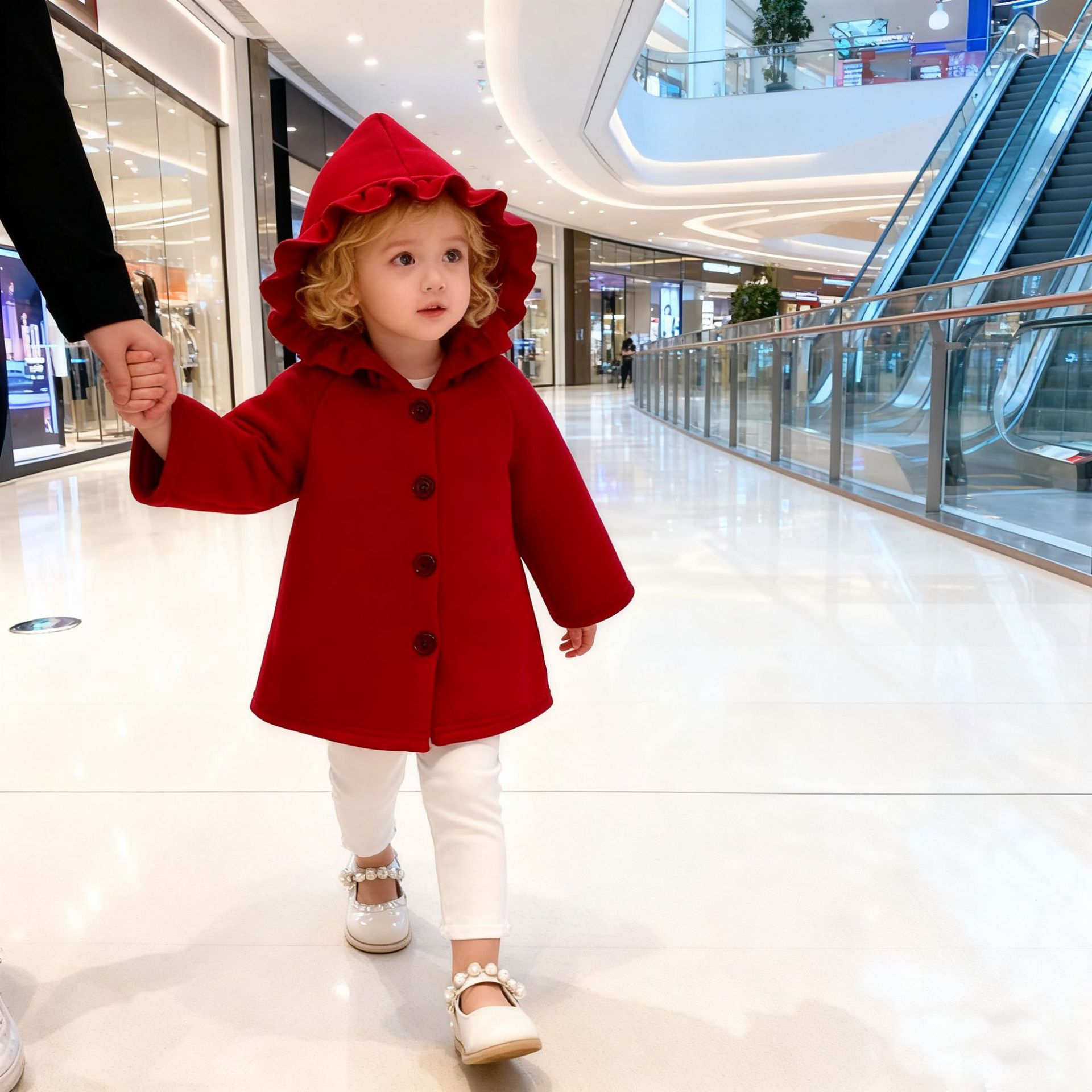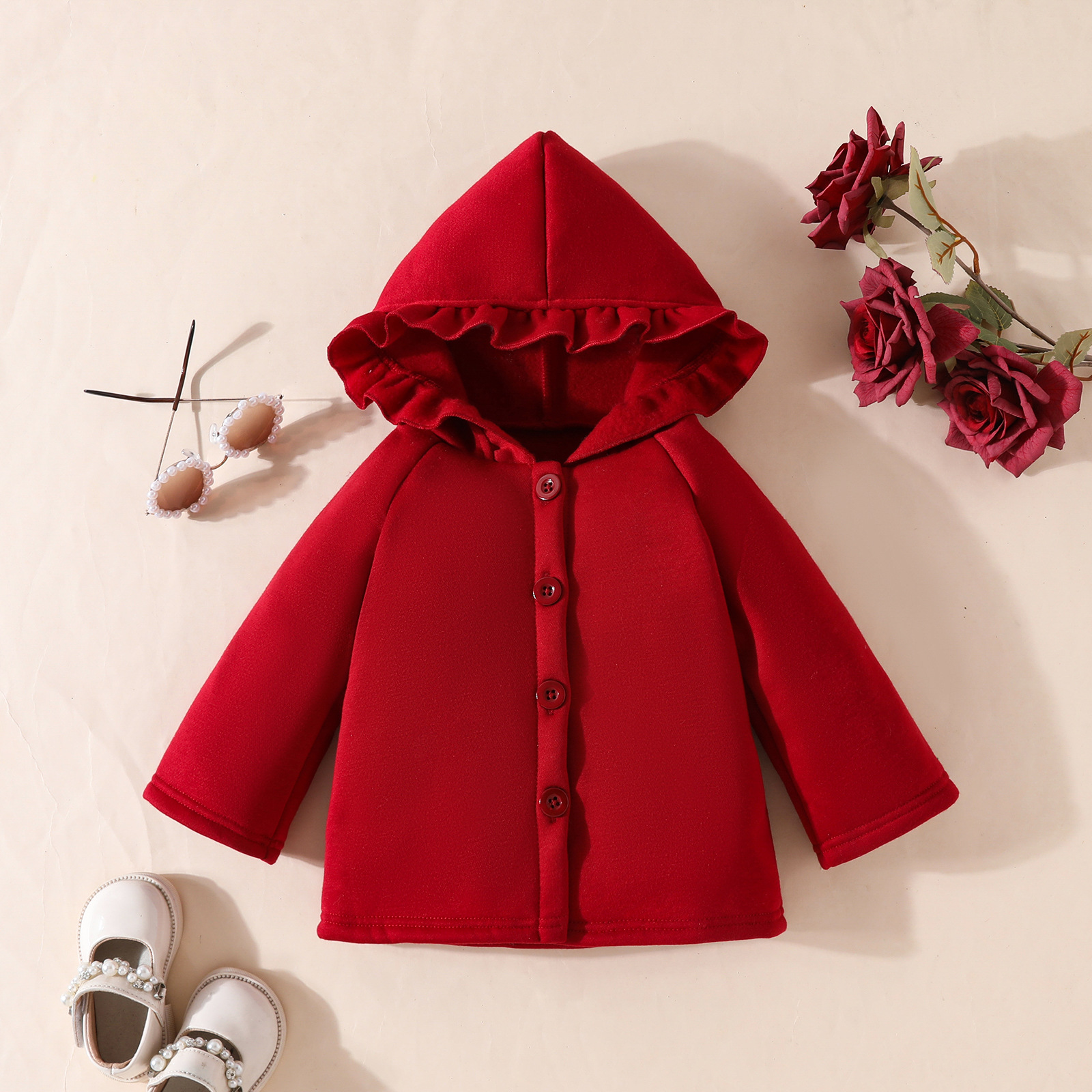 가을과 겨울 아기 소녀 후드 레이스 싱글 브레스트 솔리드 컬러 코트스토어 가기