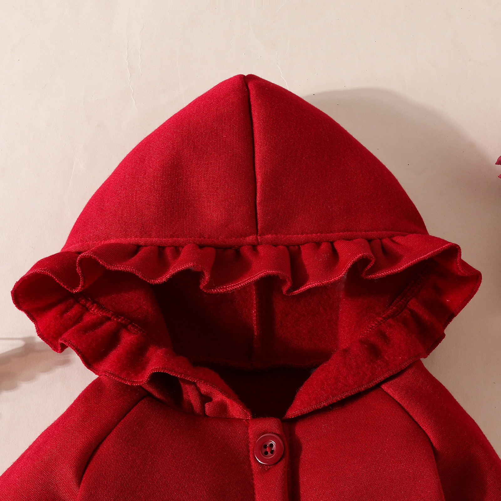 가을과 겨울 아기 소녀 후드 레이스 싱글 브레스트 솔리드 컬러 코트