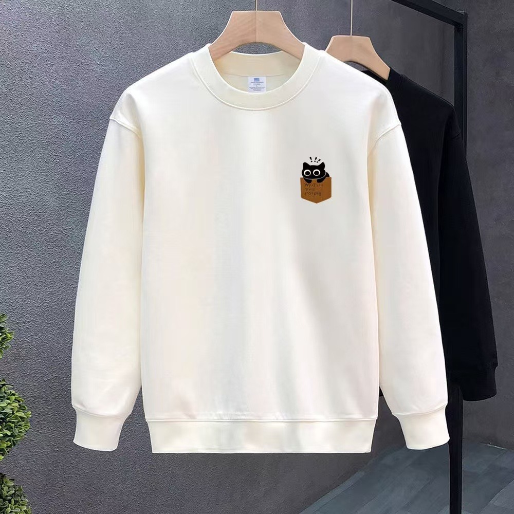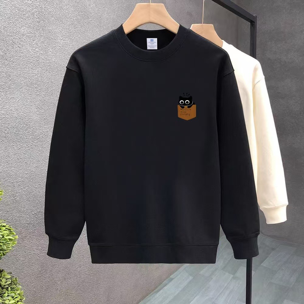 가을 2024 새로운 남성 스웨트 셔츠 한국 스타일 패션 브랜드 슬림 핏 캐주얼 라운드 넥 기모 풀오버 긴팔 재킷 탑스토어 가기