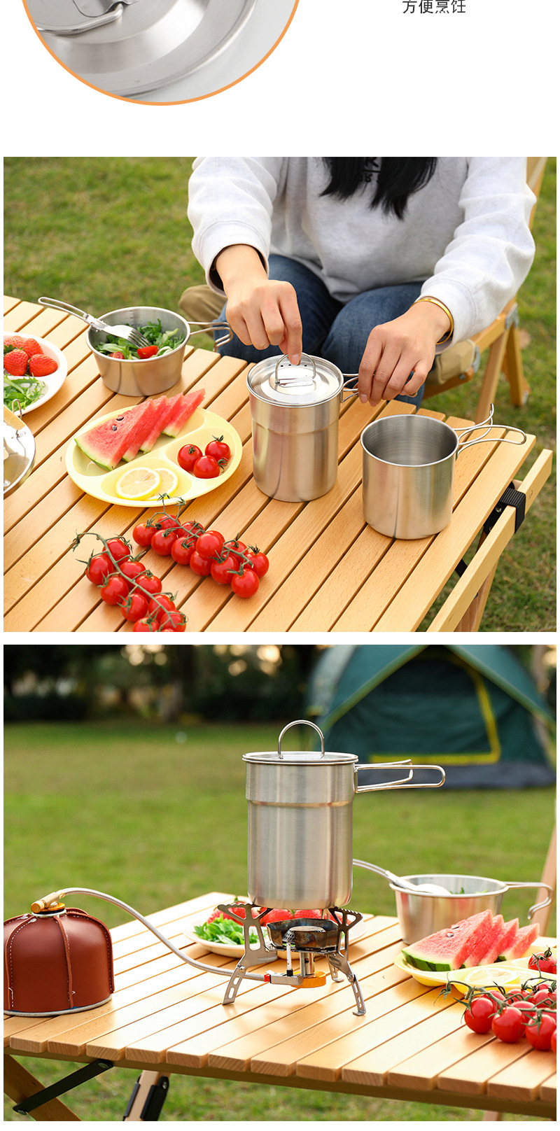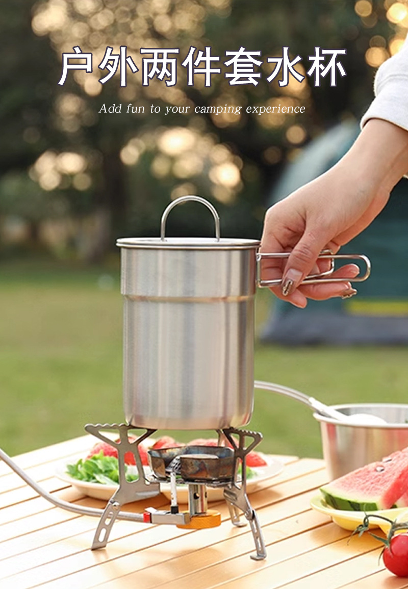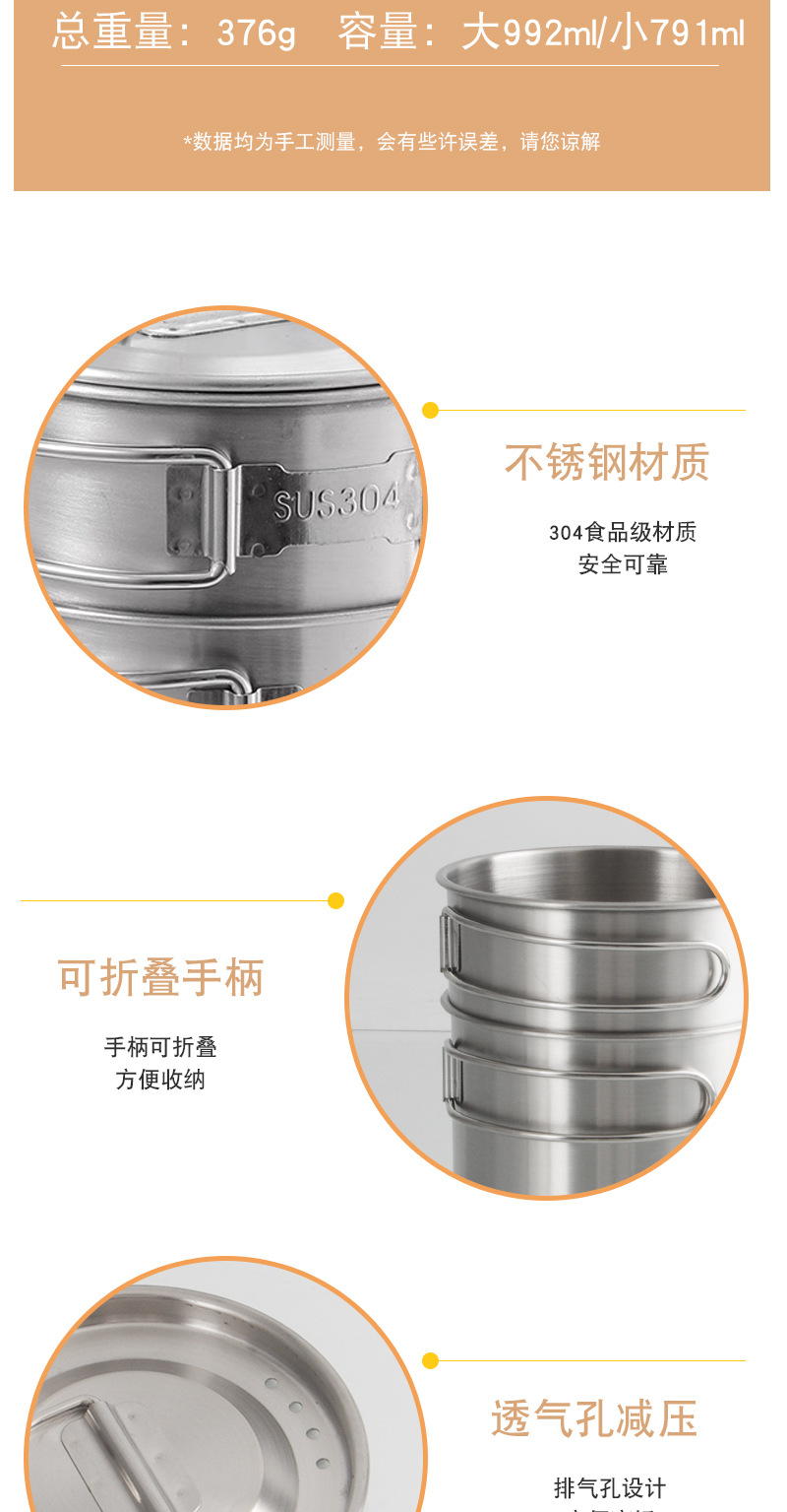 야외 304 스테인레스 스틸 백패커 세트 접는 2 조각 세트 등산 여행을위한 휴대용 캠핑 조리기구