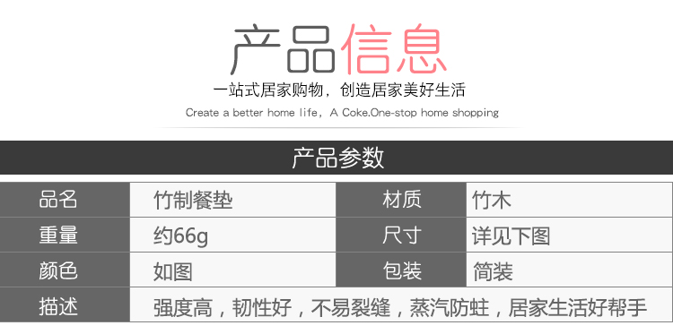 8个装竹制菜垫子隔热垫餐桌垫杯垫碗垫防烫锅垫盘子竹垫家用满和스토어 가기