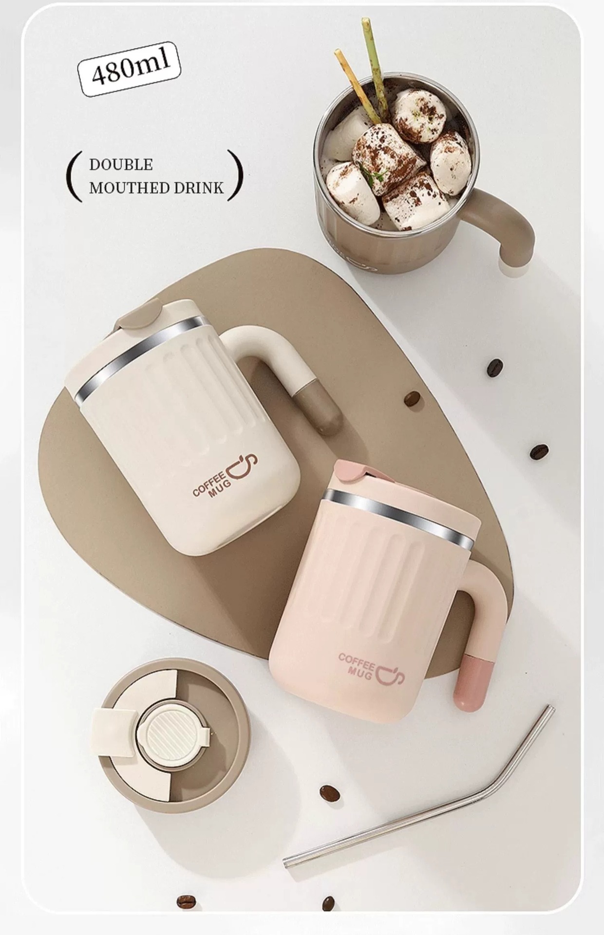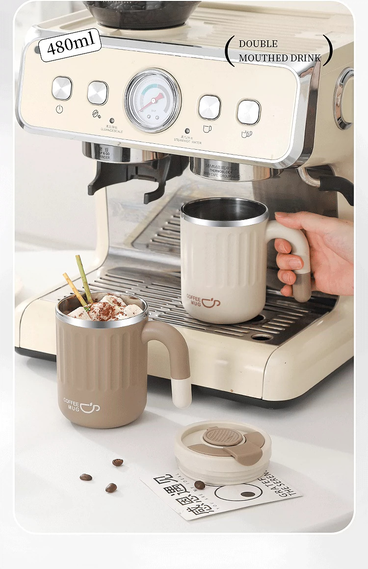 뚜껑이 달린 새로운 304 스테인레스 스틸 커피 머그, 보온 물컵, 가정 및 사무실용 냉수컵