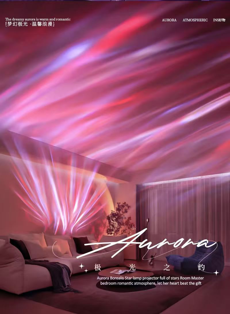 국경 간 오로라 borealis 별이 빛나는 하늘 프로젝션 램프 USB 분위기 달 램프 낭만적 인 꿈 프로젝션 야간 조명 침실 분위기