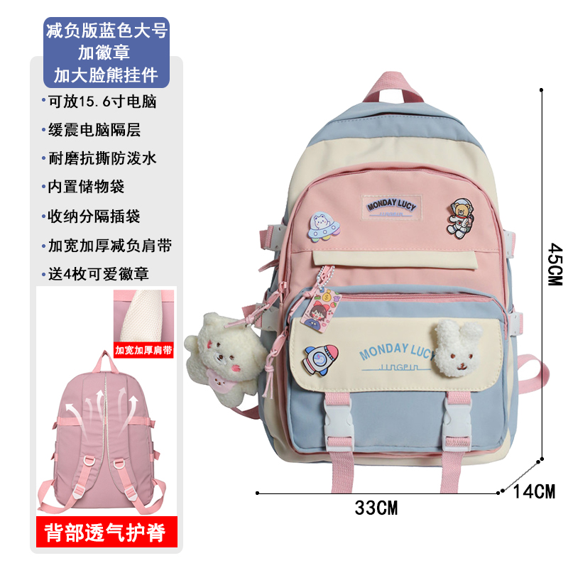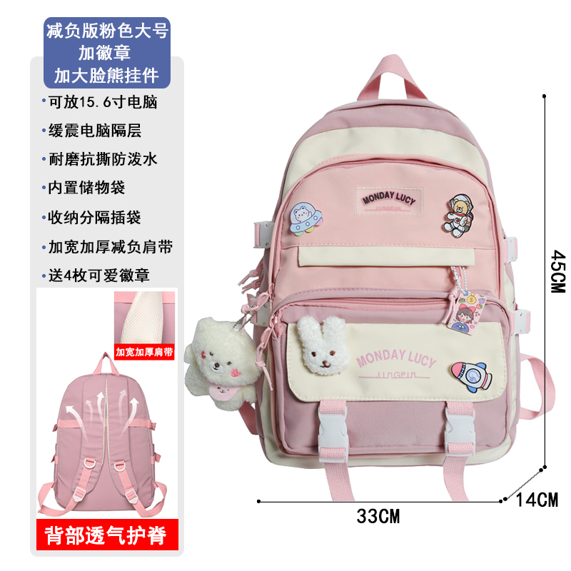 여성용 책가방 ins 스타일 귀여운 한국어 버전 고등학생 중학생 초등학생 3~5학년 및 6학년 배낭