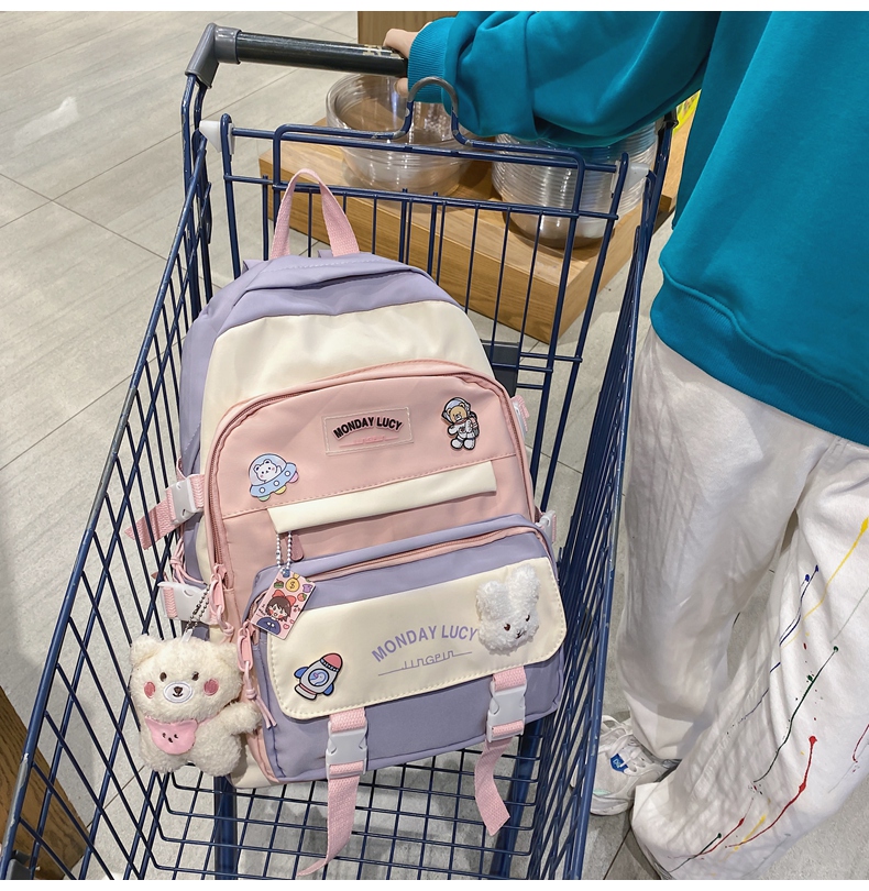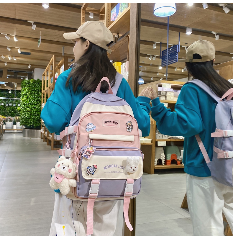 • 보라색 책가방 + 과외가방 + 뱃지 2세트 + 큰얼굴 곰 펜던트 2개✦
