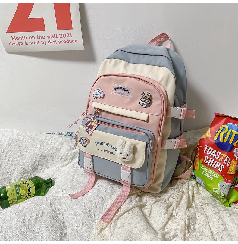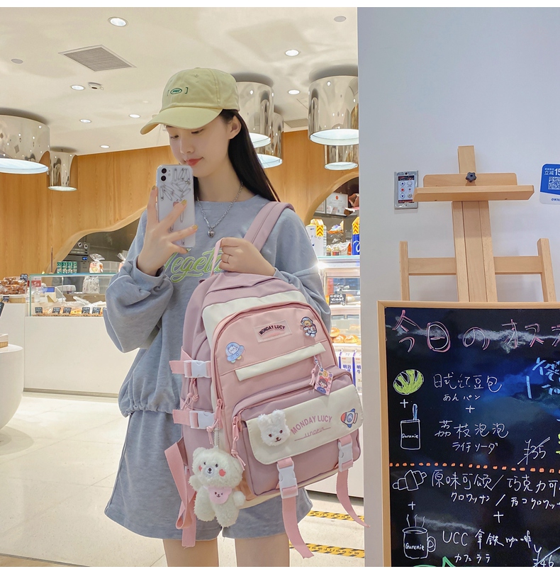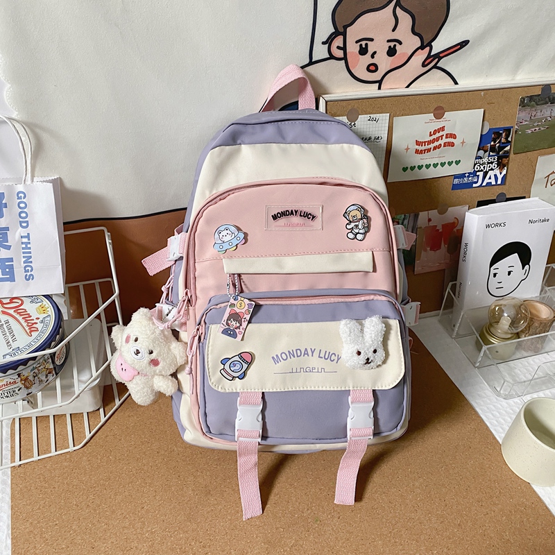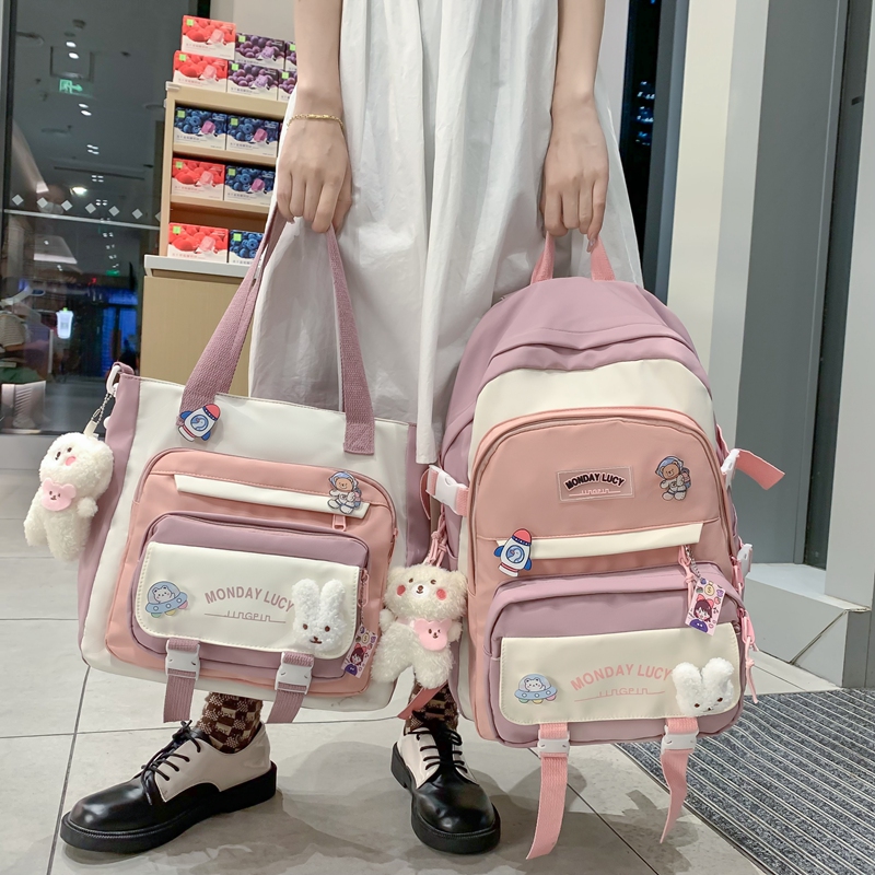 • 핑크색 책가방 + 과외가방 + 뱃지 2세트 + 큰얼굴 곰 펜던트 2개✦
