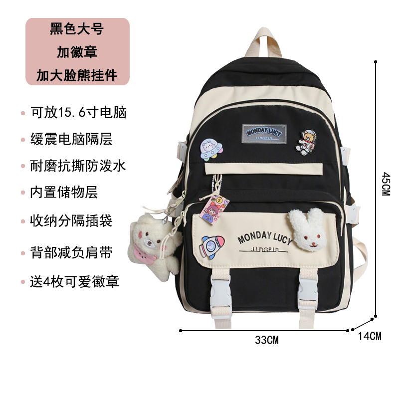 • 검은색 책가방 + 과외가방 + 뱃지 2세트 + 큰얼굴 곰 펜던트 2개✦