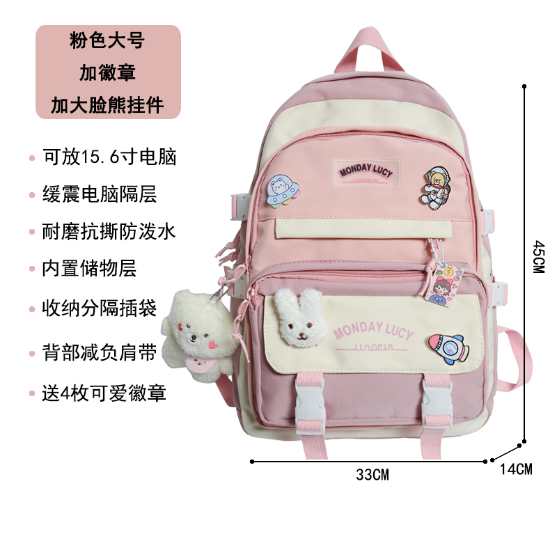 • 핑크색 경량 버전 대형 + 뱃지 + 큰 얼굴 곰 펜던트✦