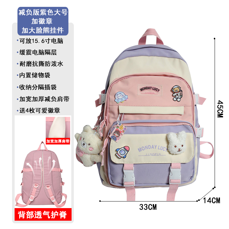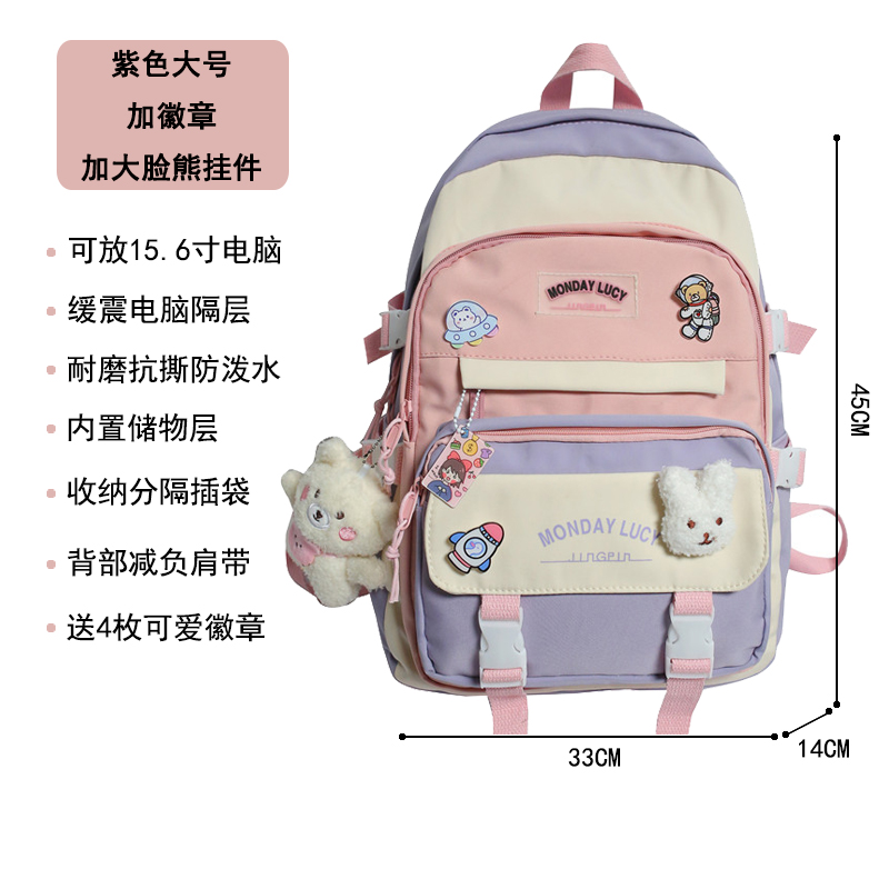 • 보라색 부담 감소 버전 대형 + 배지 + 큰 얼굴 곰 펜던트✦