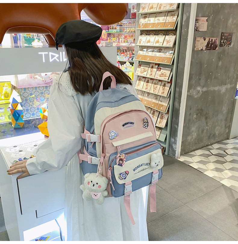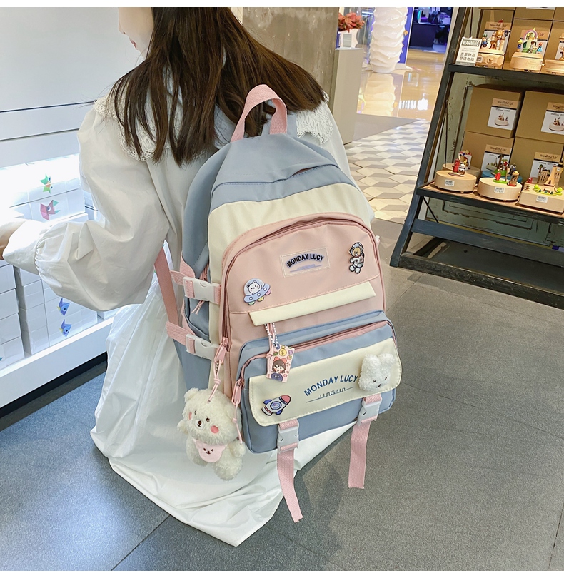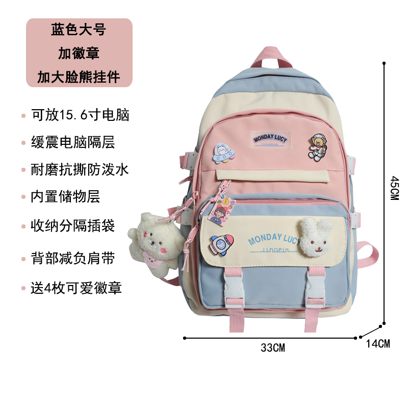 • 파란색 책가방 + 과외가방 + 뱃지 2세트 + 큰 얼굴 곰 펜던트 2개✦