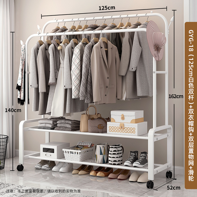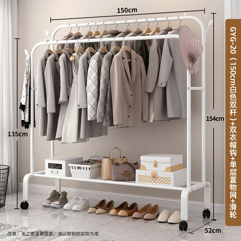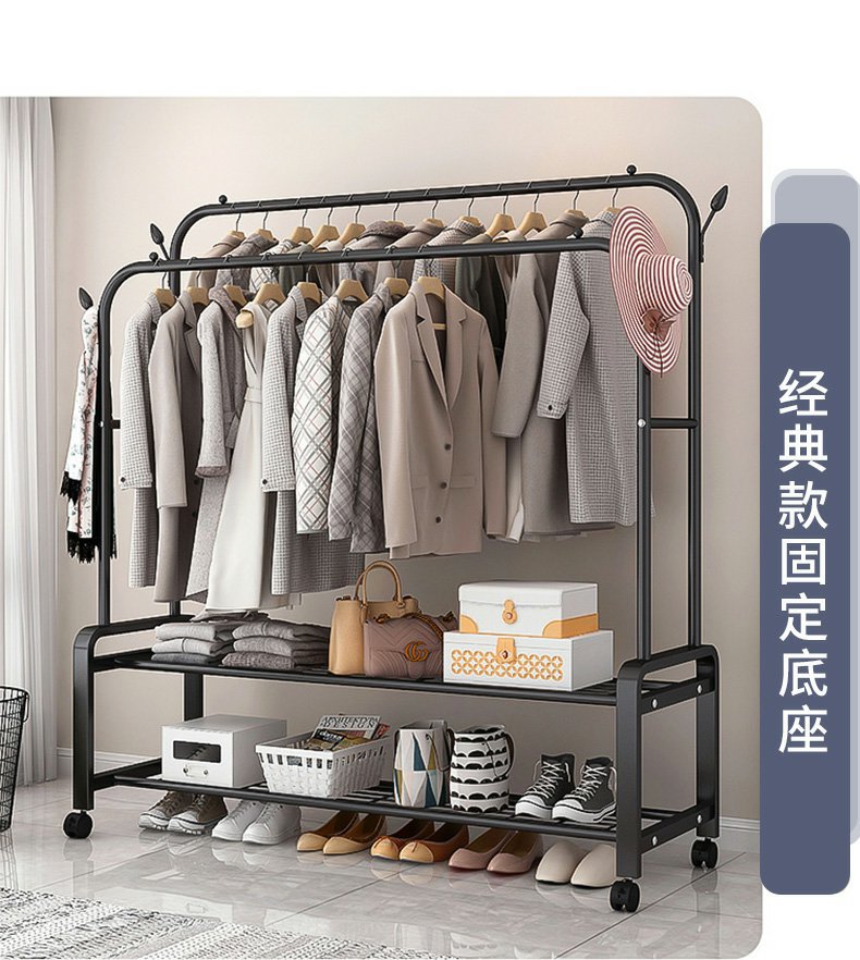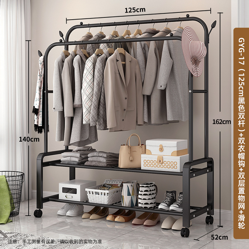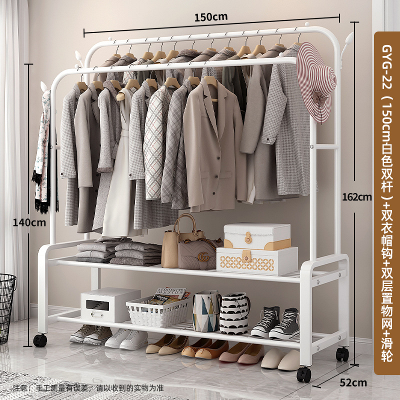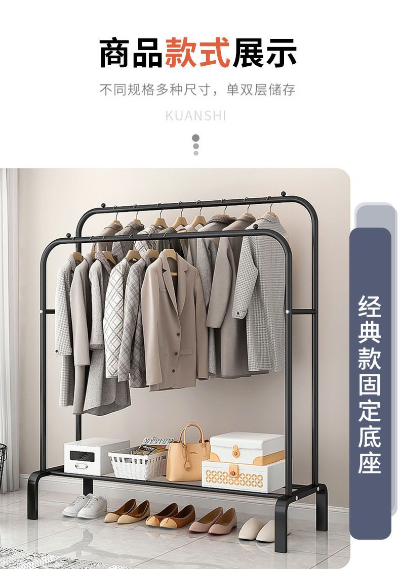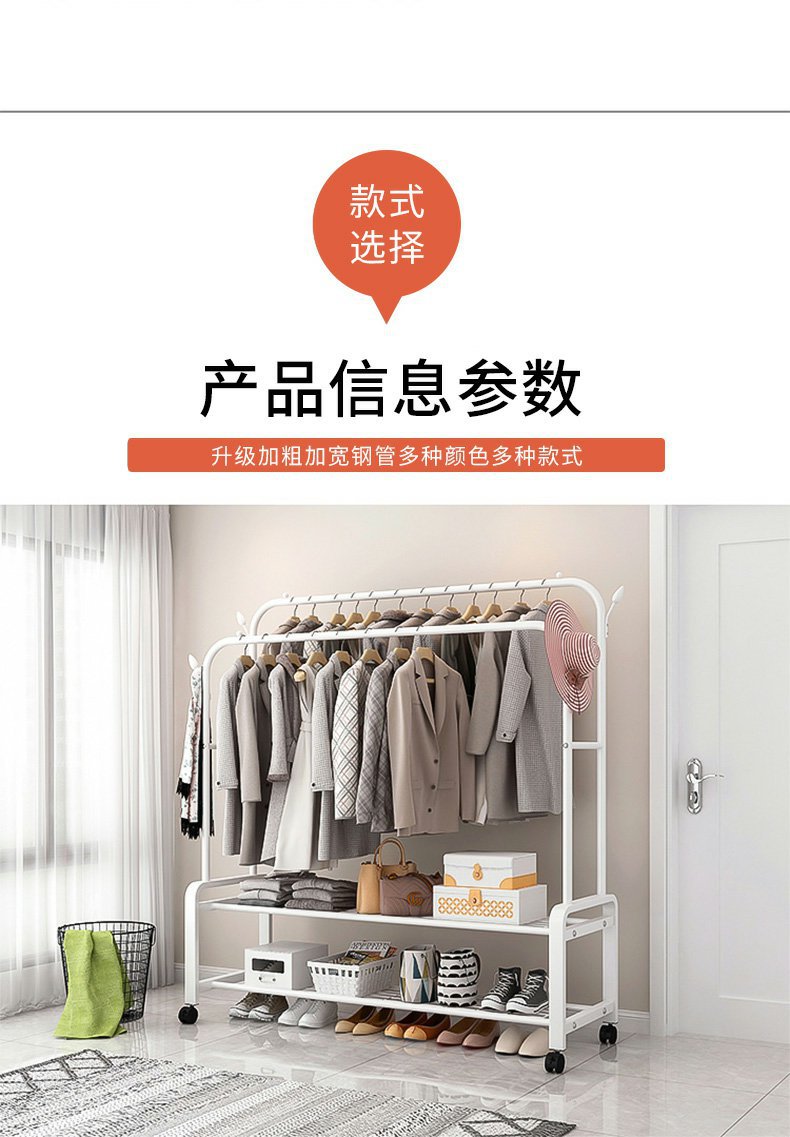 간단한 코트 랙 더블로드 건조 랙 바닥 실내 방 옷걸이 가정용 침실 보관 랙