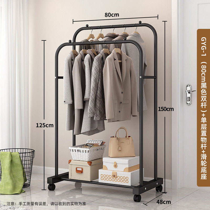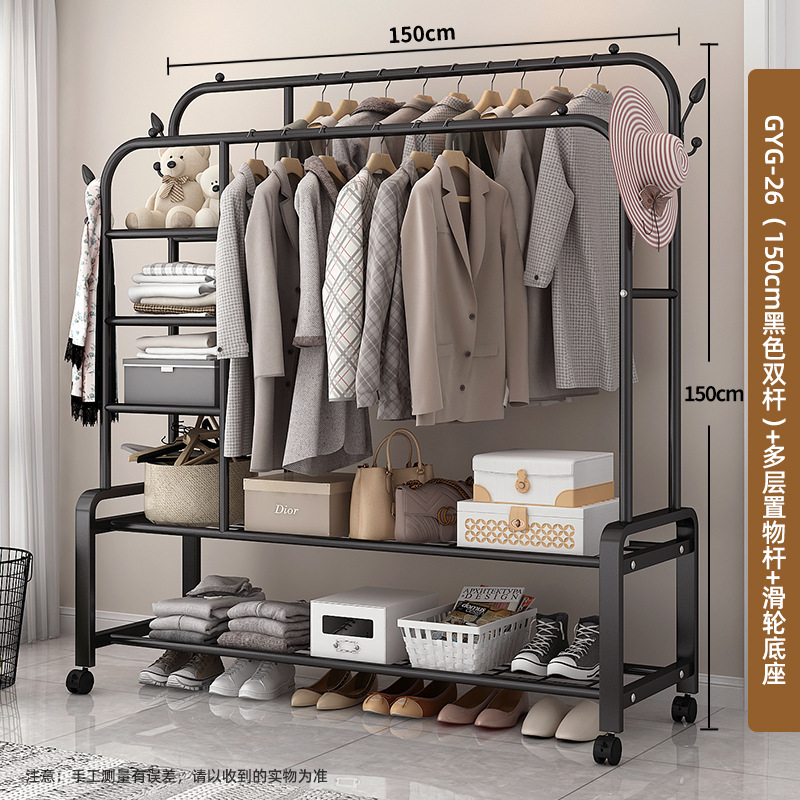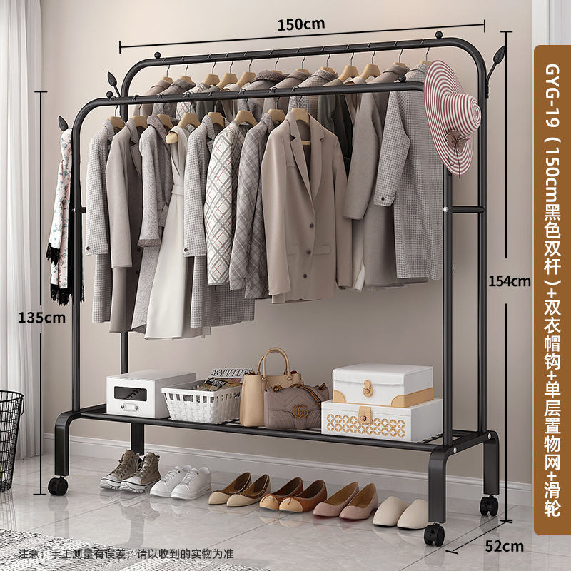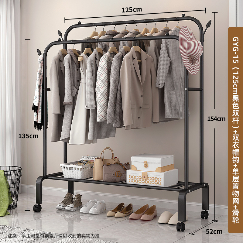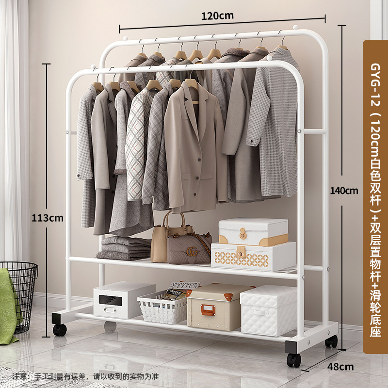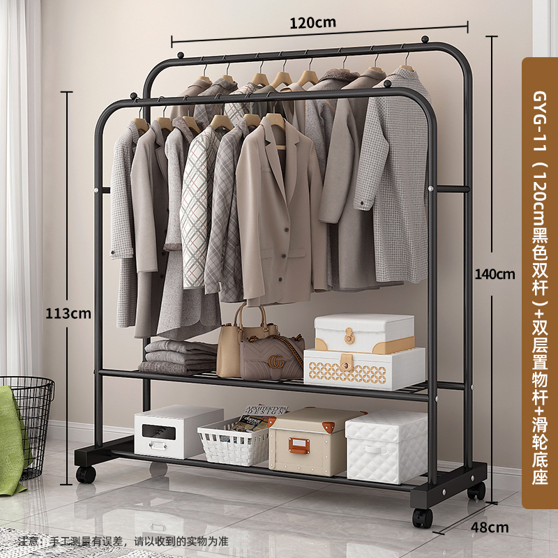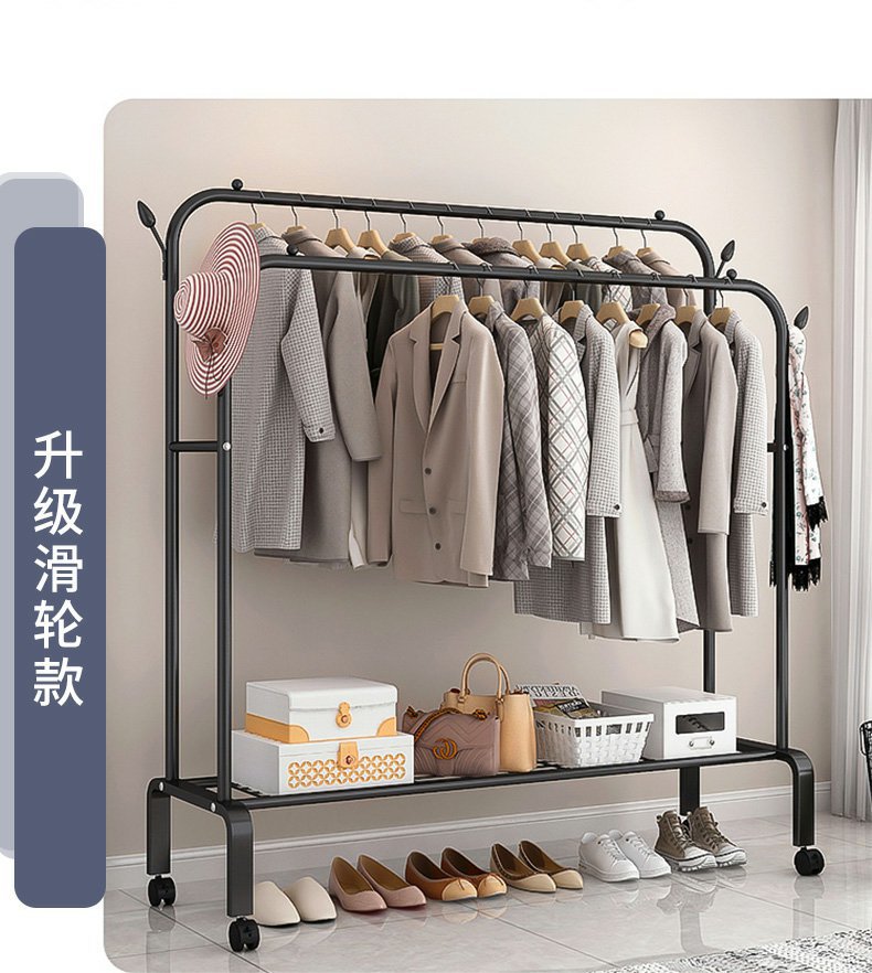 간단한 코트 랙 더블로드 건조 랙 바닥 실내 방 옷걸이 가정용 침실 보관 랙