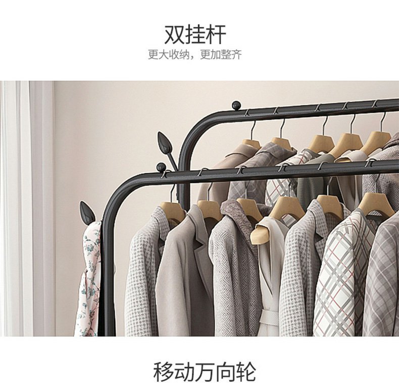 简易衣帽架双杆式晾衣架落地室内房间挂衣架子家用卧室衣服收纳架
