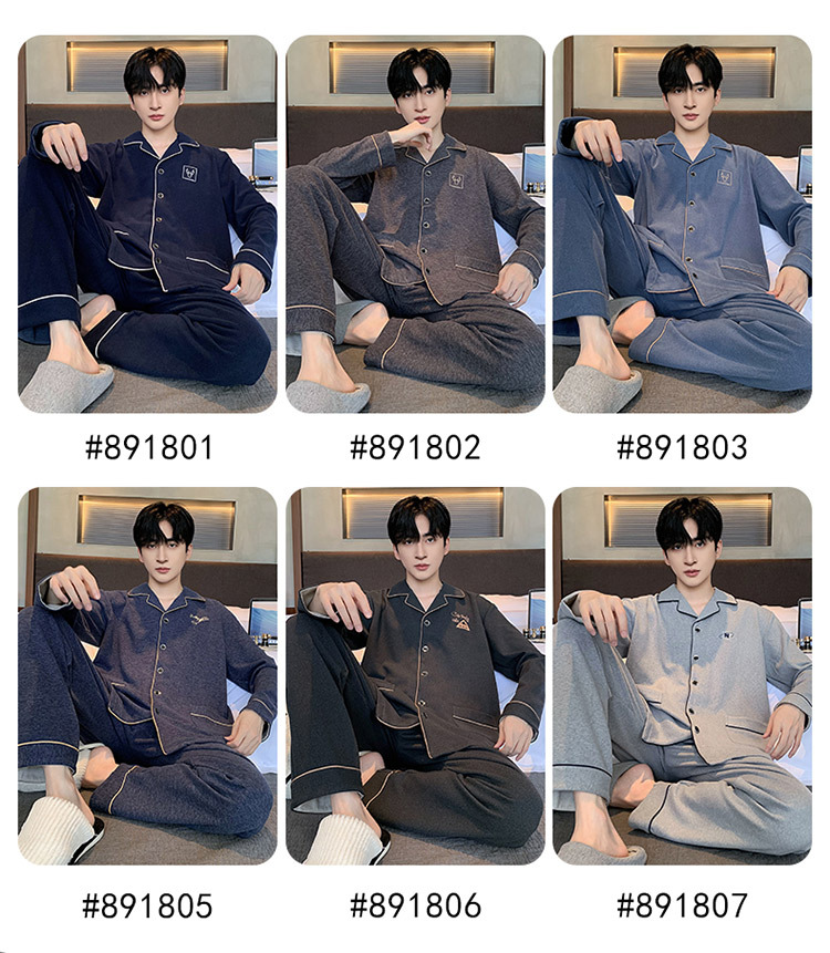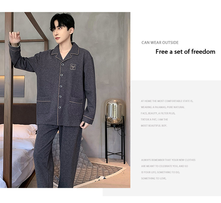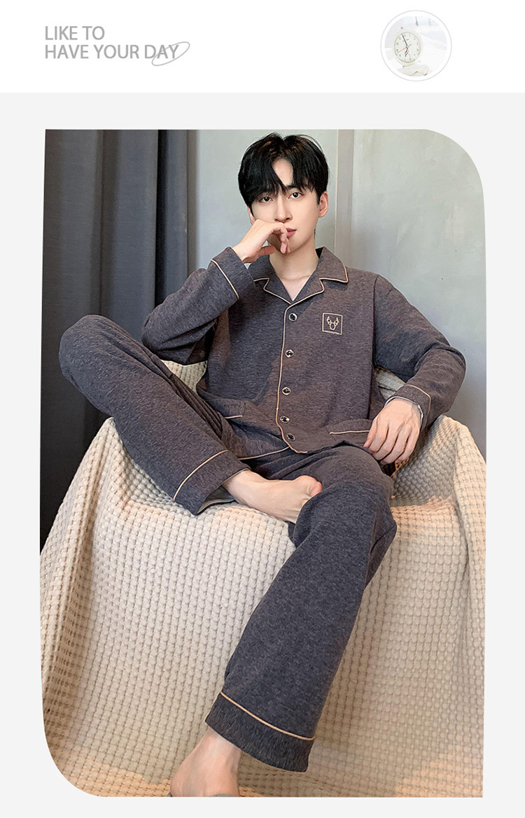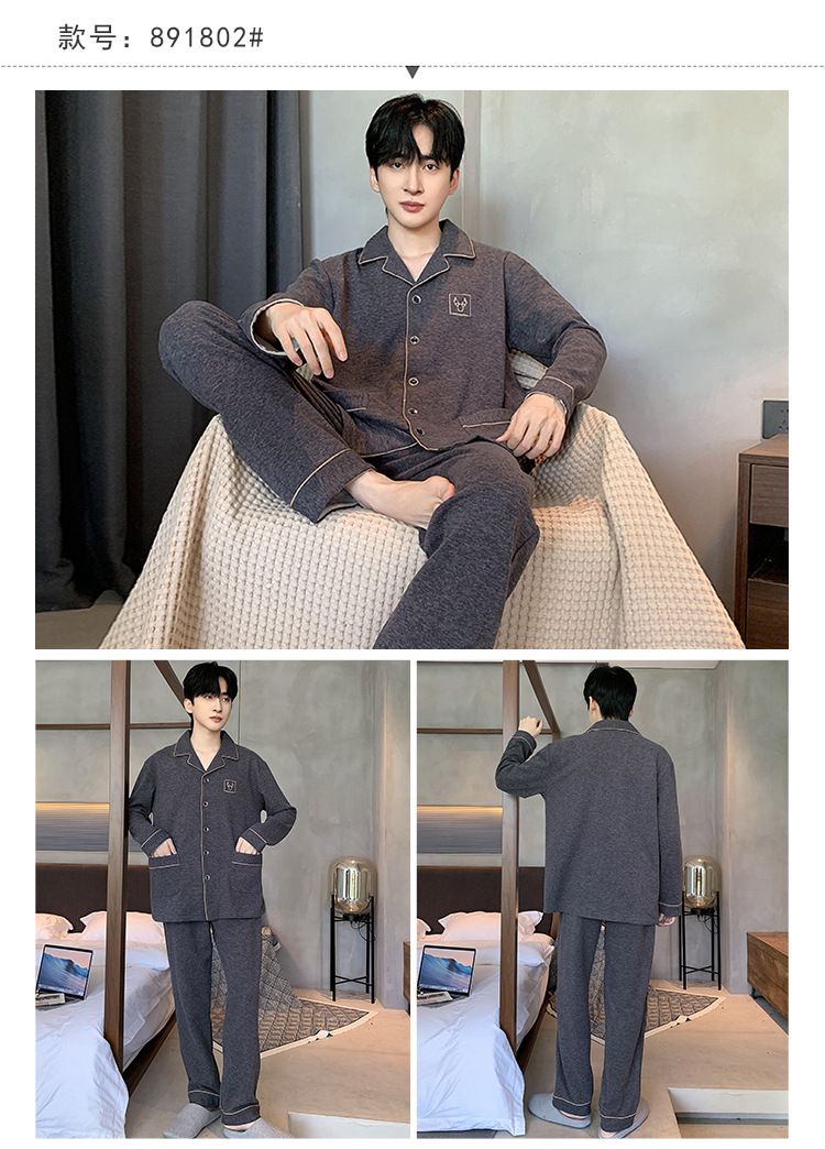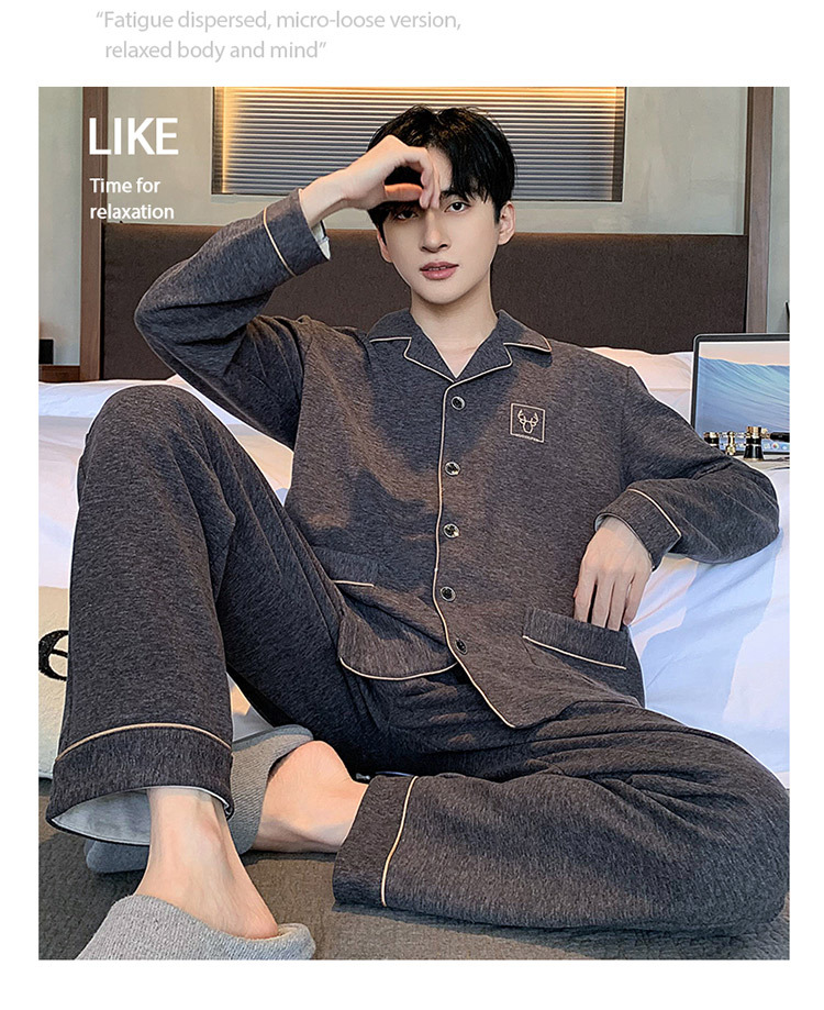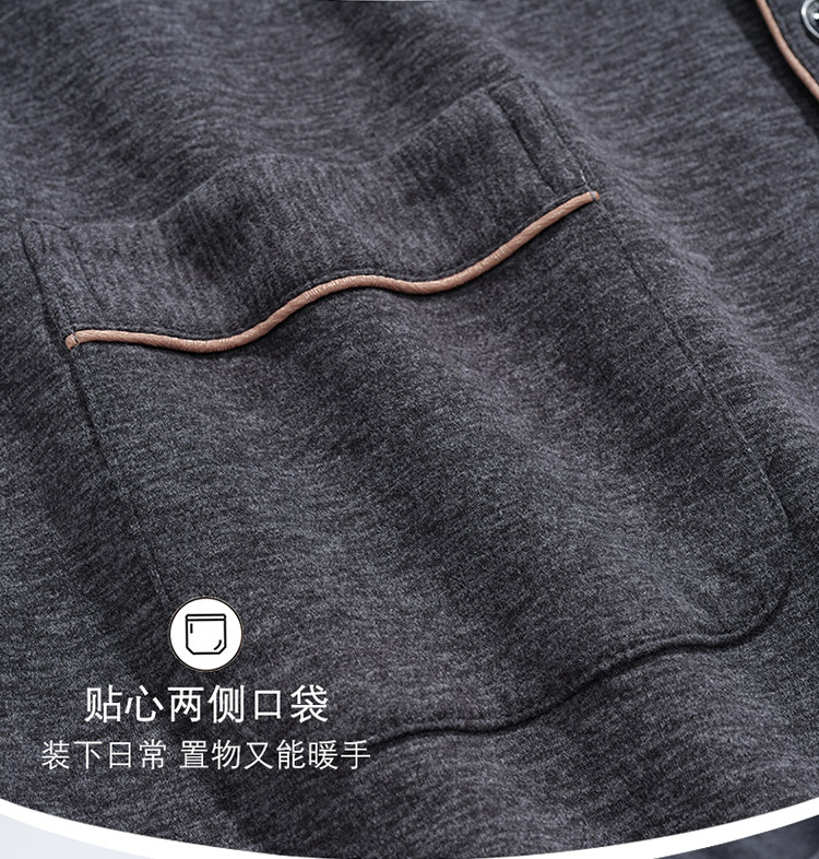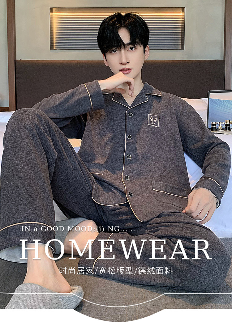 [독일 벨벳] 양면 샌딩 파자마 남자 가을과 겨울 두꺼운 따뜻한 캐주얼 카디건 옷깃 홈 의류 세트
