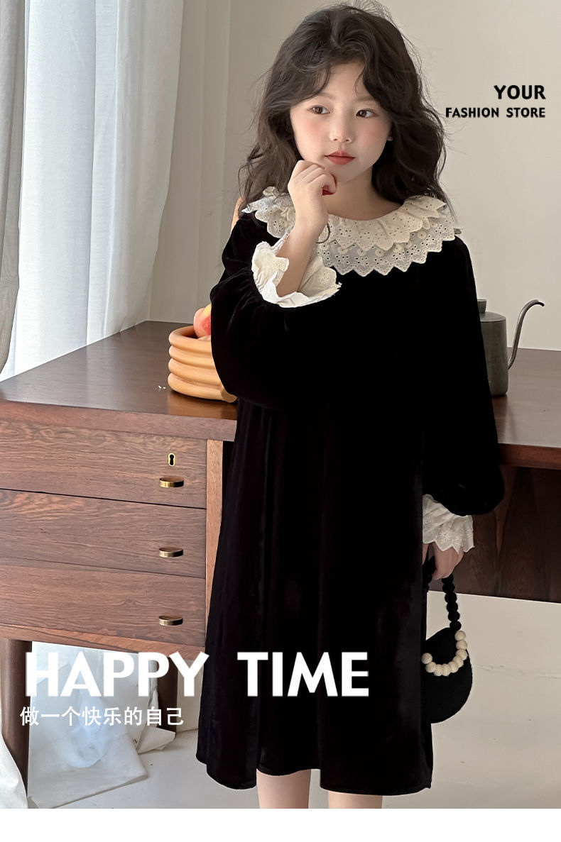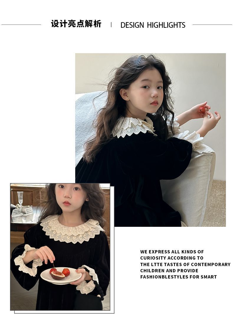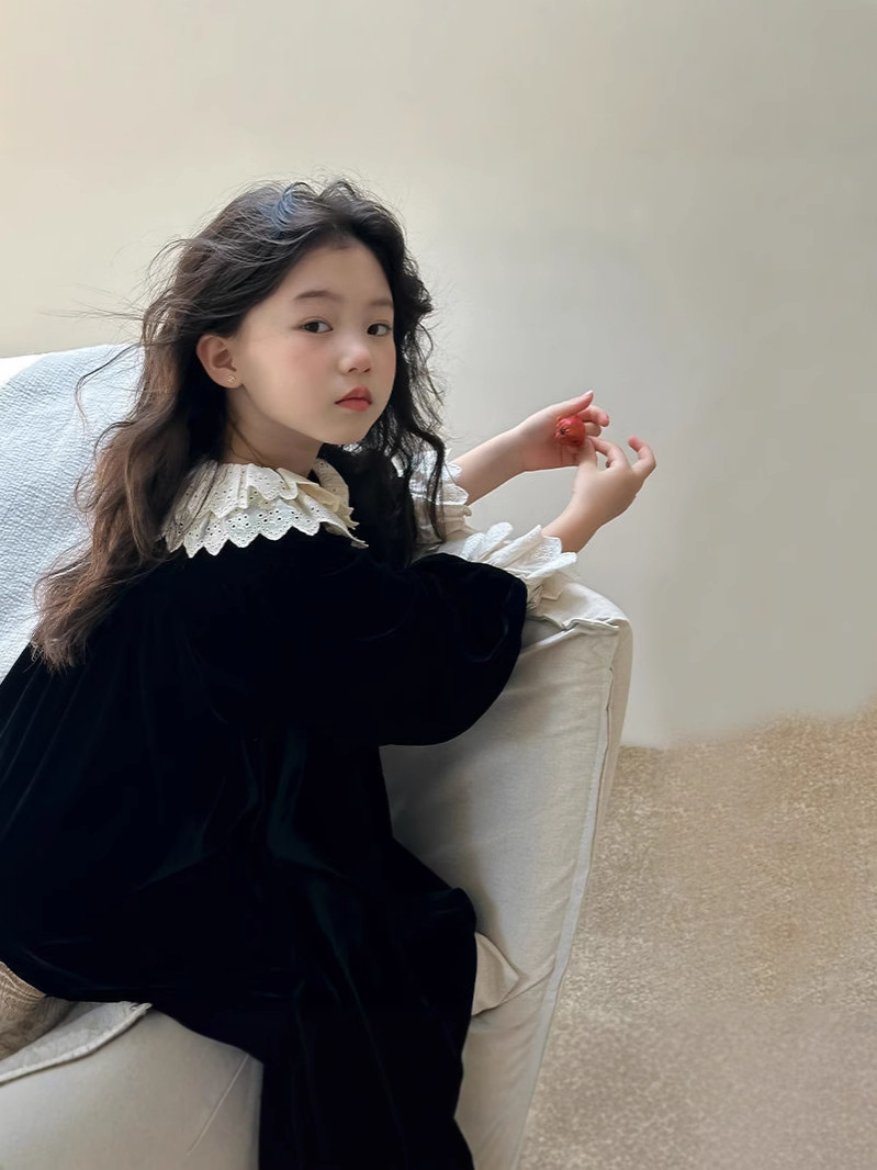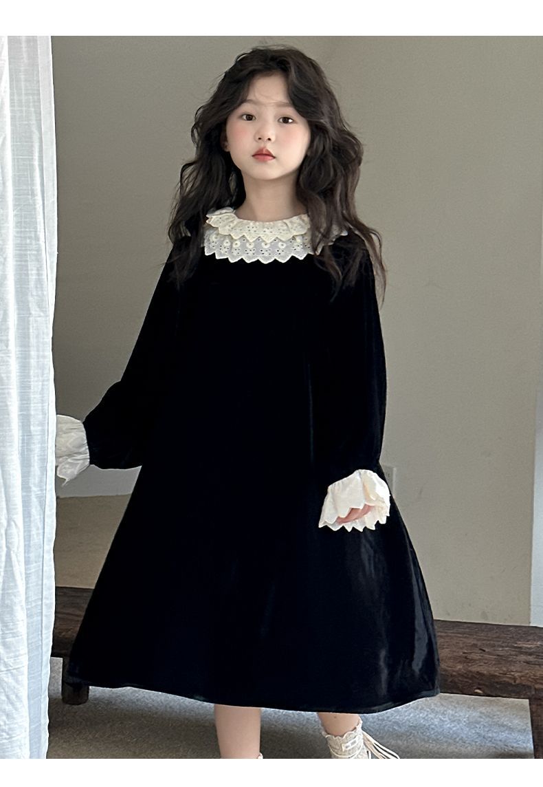 소녀 원피스 가을 겨울 2024 새로운 어린이 벨벳 고급 긴팔 외국식 프린세스 스커트