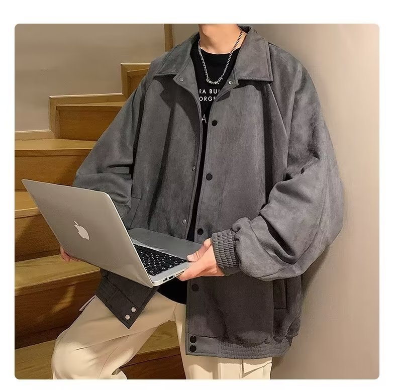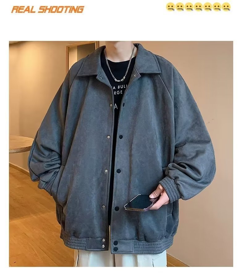 미국식 스웨이드 재킷 남성용 봄 가을 2025 신상 카디건 홍콩 스타일 루즈핏 남성용 라펠 워크웨어 재킷 트렌디