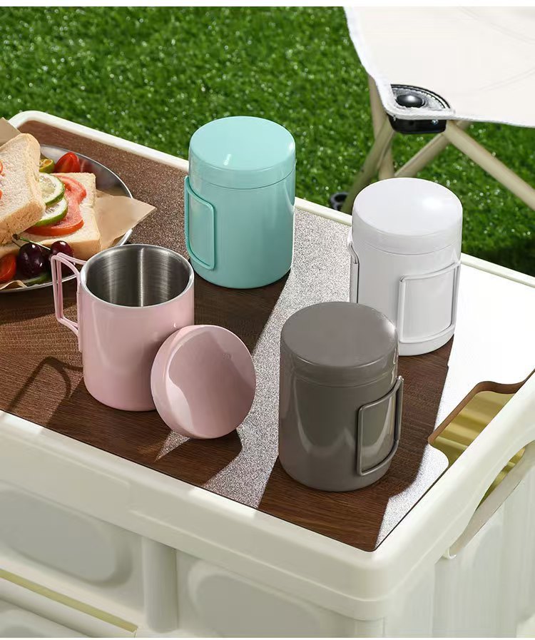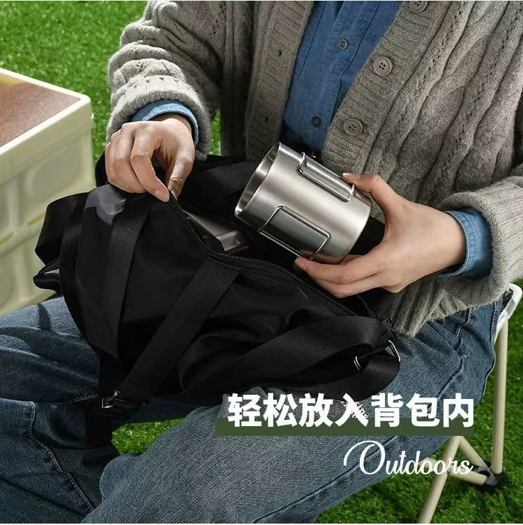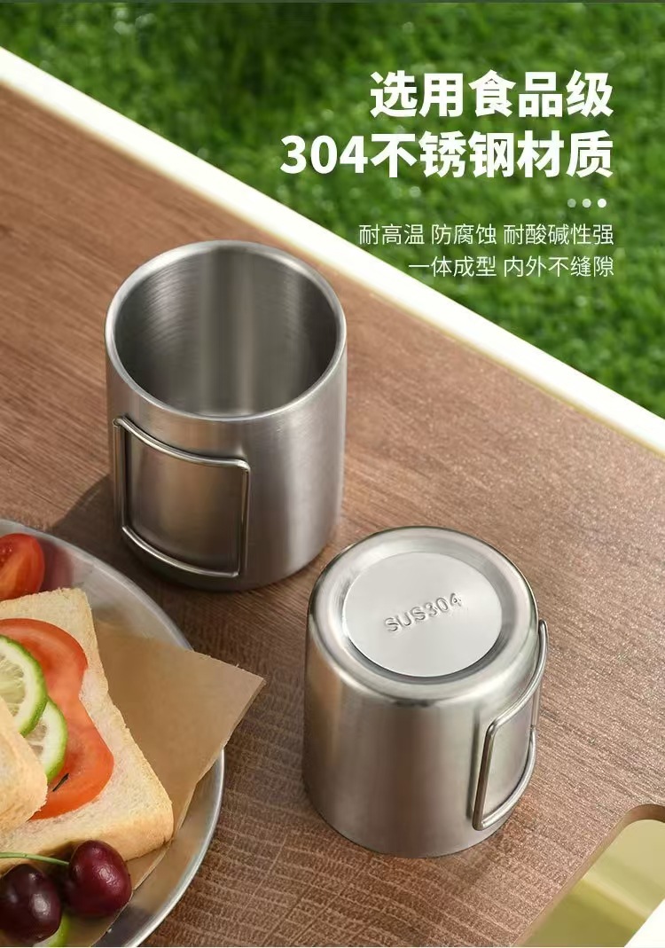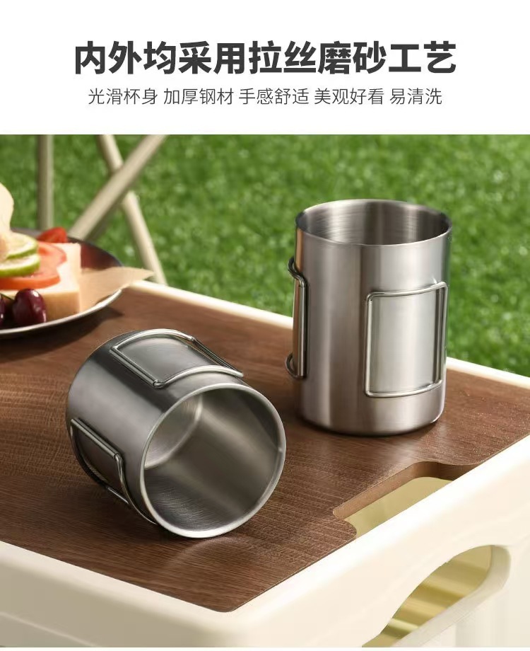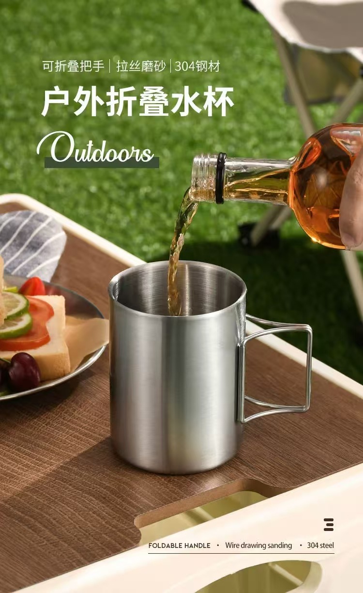 304 스테인레스 스틸 접이식 물 컵 휴대용 야외 컵 캠핑 등산 컵 더블 레이어 단열 머그잔 커피 컵