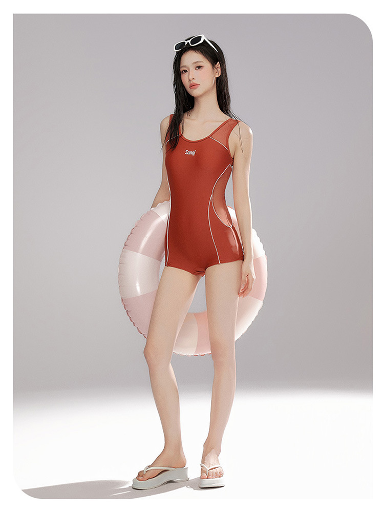 2024 새로운 스피드 수영복 여성 보수적으로 보수적 인 플랫 코너 벨리 커버 슬림 섹시한 수영장 스포츠 온천 수영복