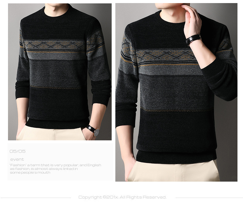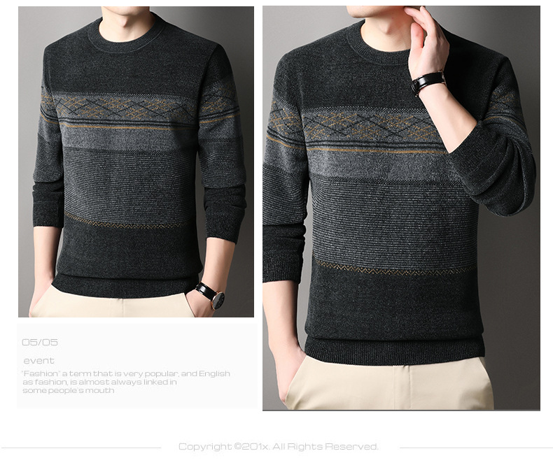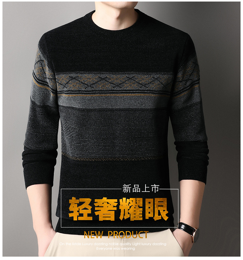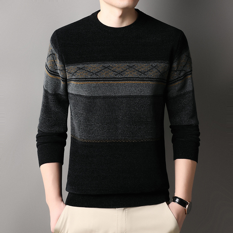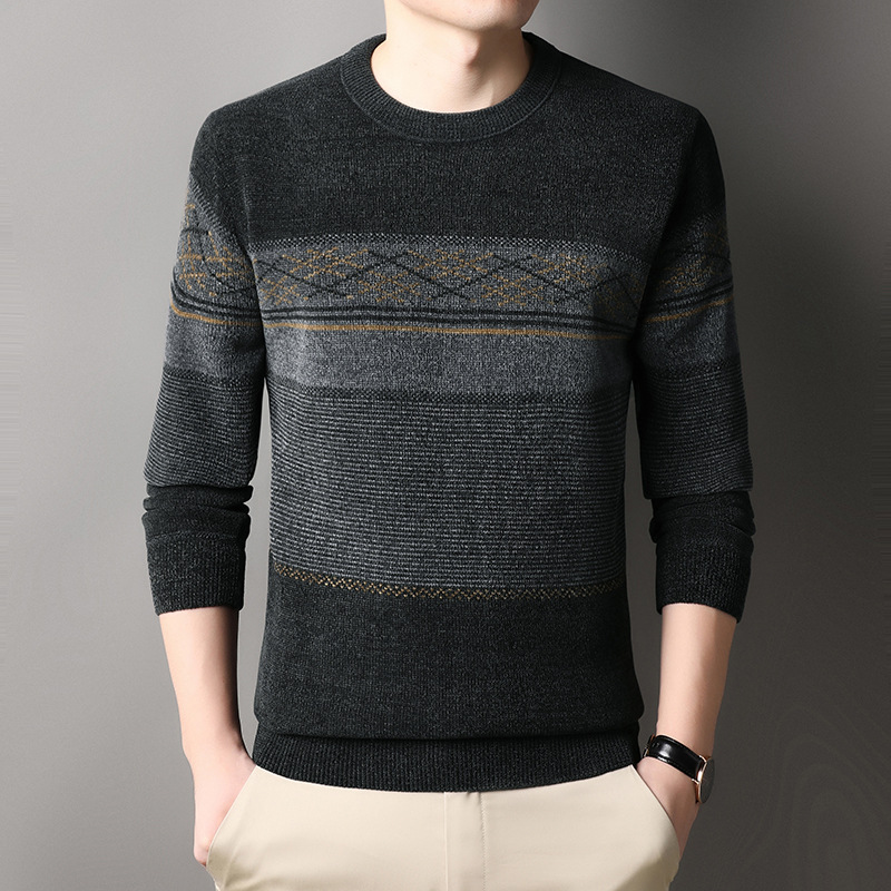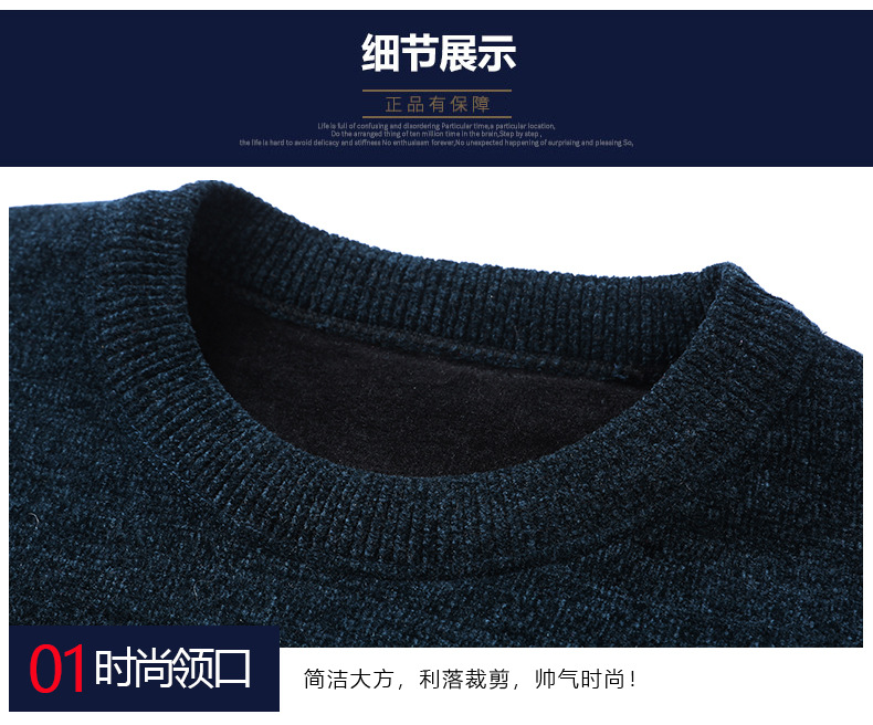 가을과 겨울 Chenille 기모 스웨터 중년 남자 두꺼운 따뜻한 자카드 크루 넥 올 매치 니트 스웨터스토어 가기