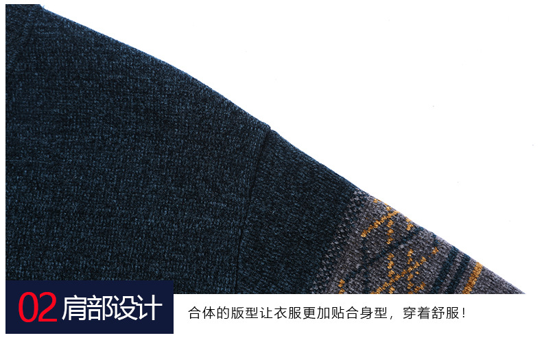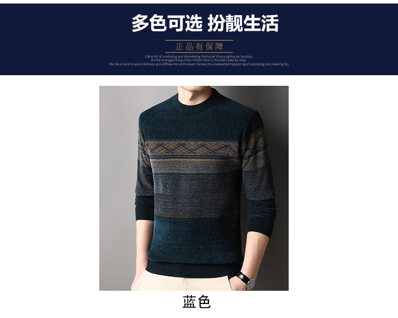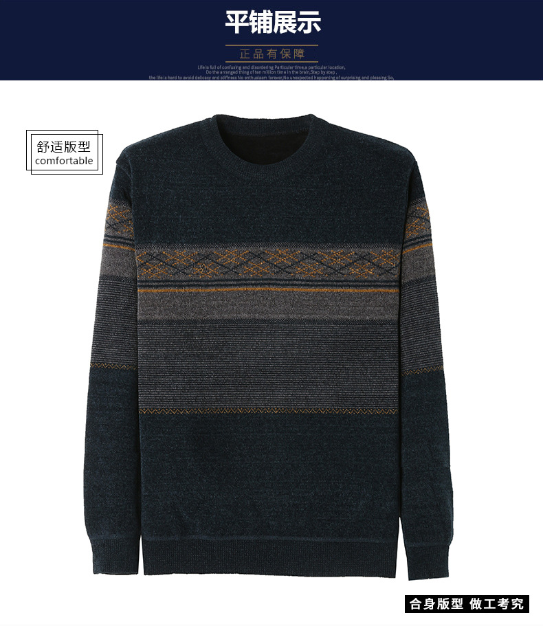 가을과 겨울 Chenille 기모 스웨터 중년 남자 두꺼운 따뜻한 자카드 크루 넥 올 매치 니트 스웨터