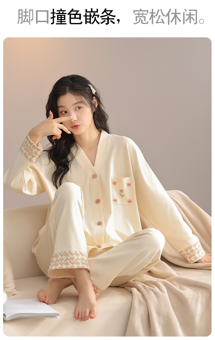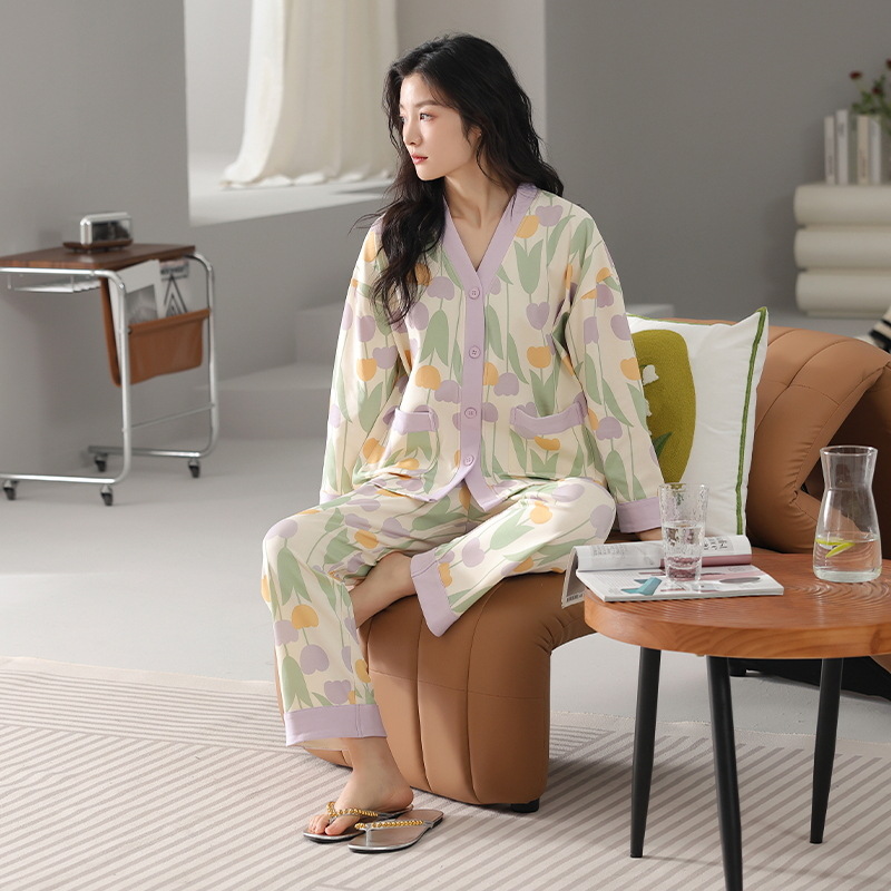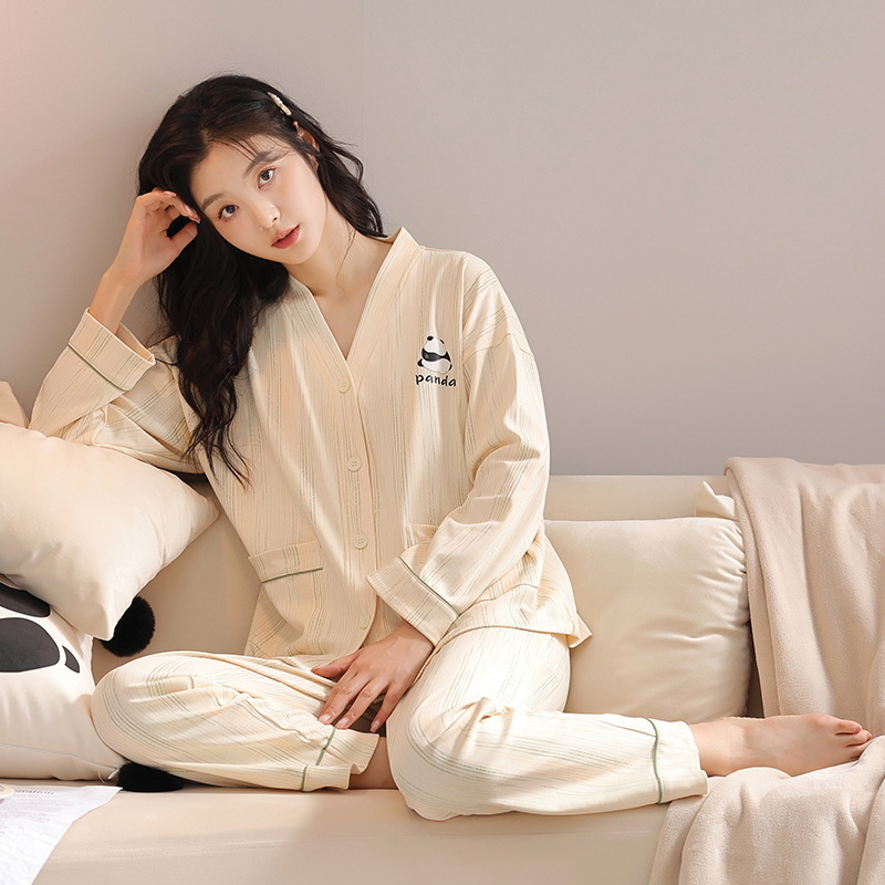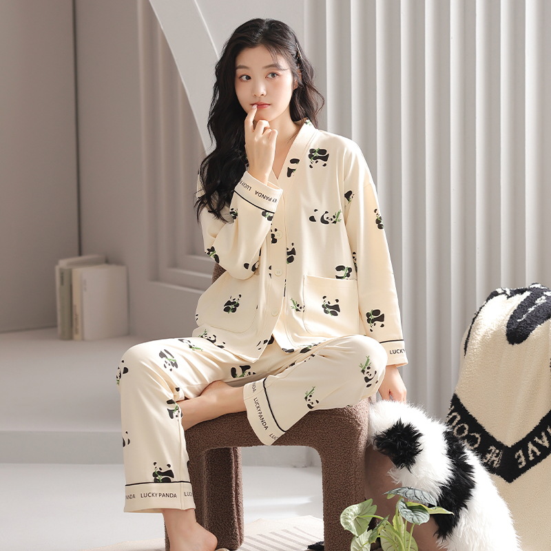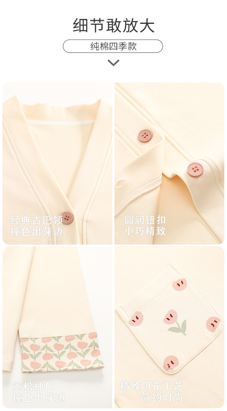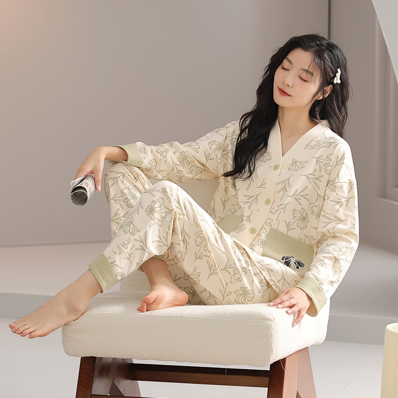 클래스 A 항균 잠옷 여성 가을 및 겨울 면 긴팔 카디건 귀여운 여성용 면 홈 의류 여성용 세트스토어 가기