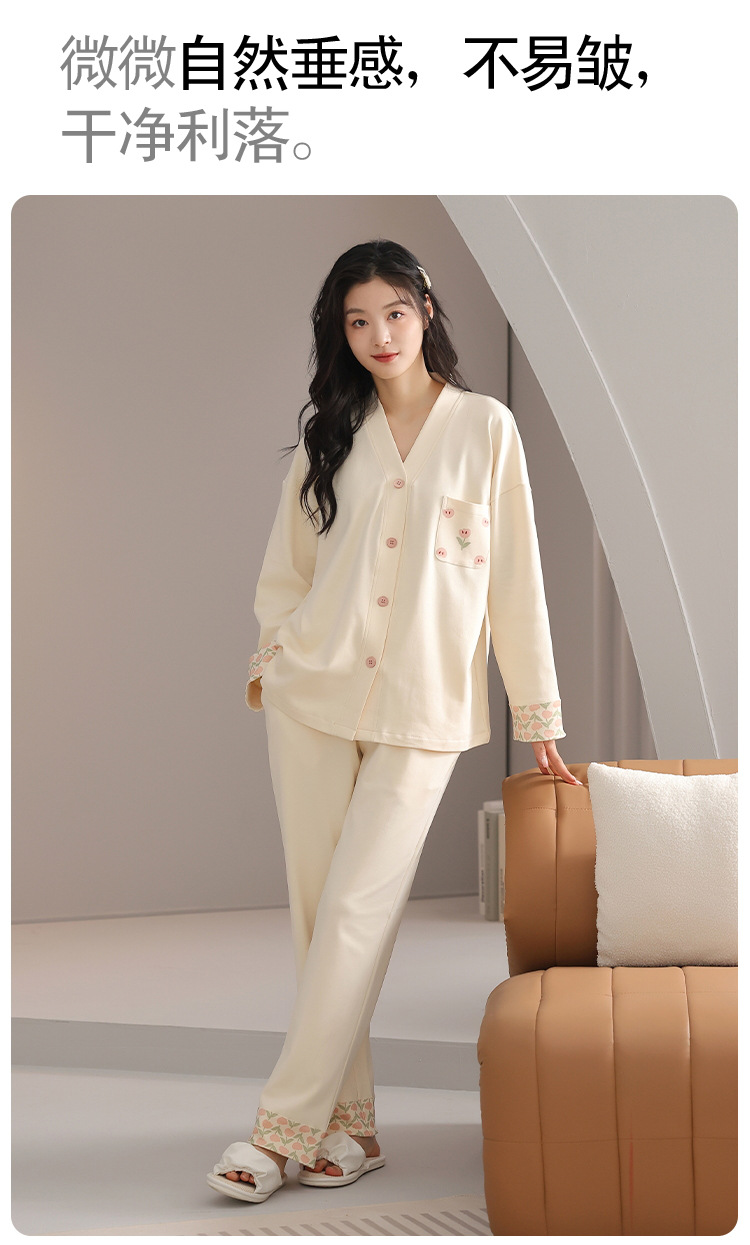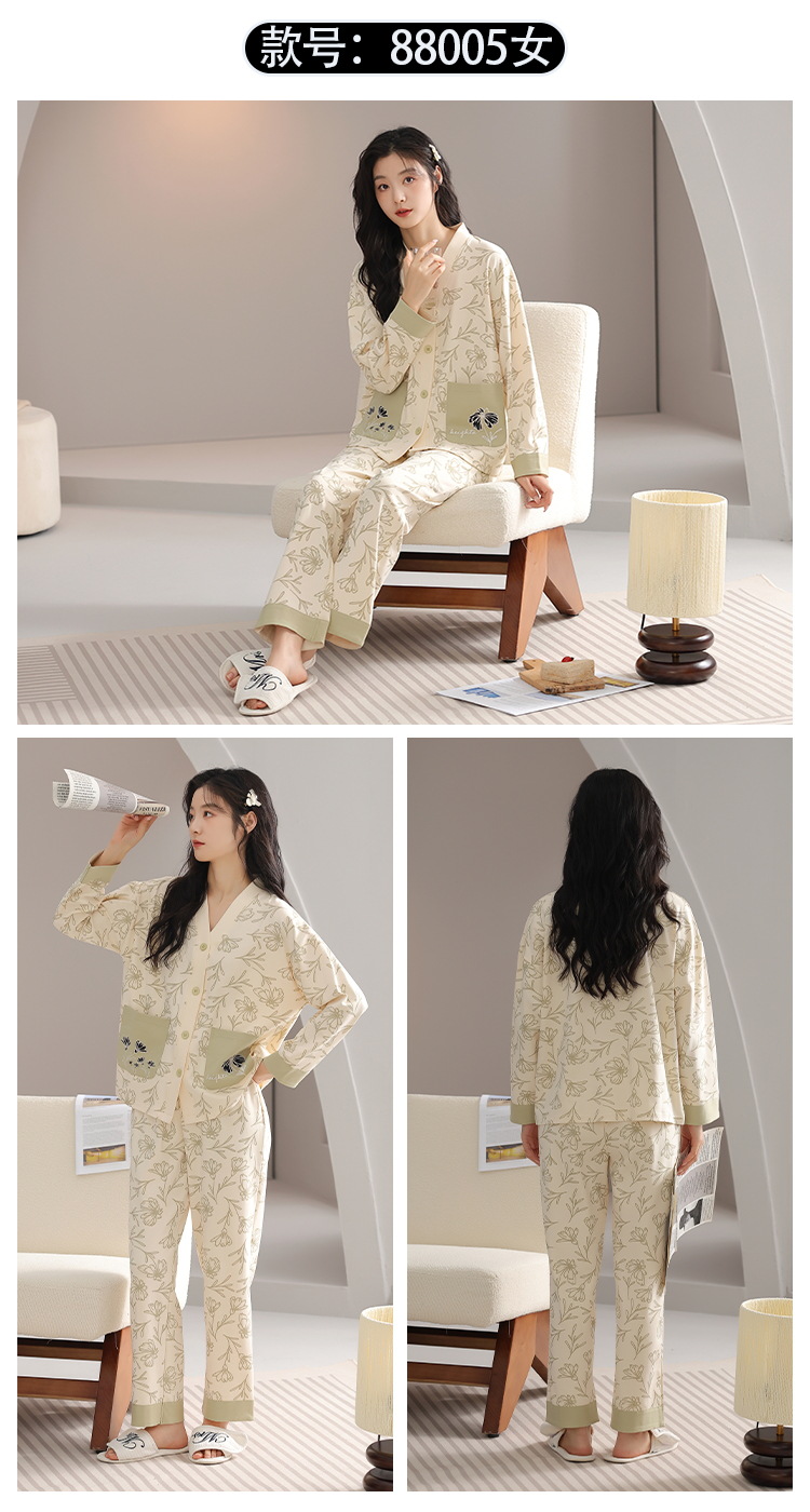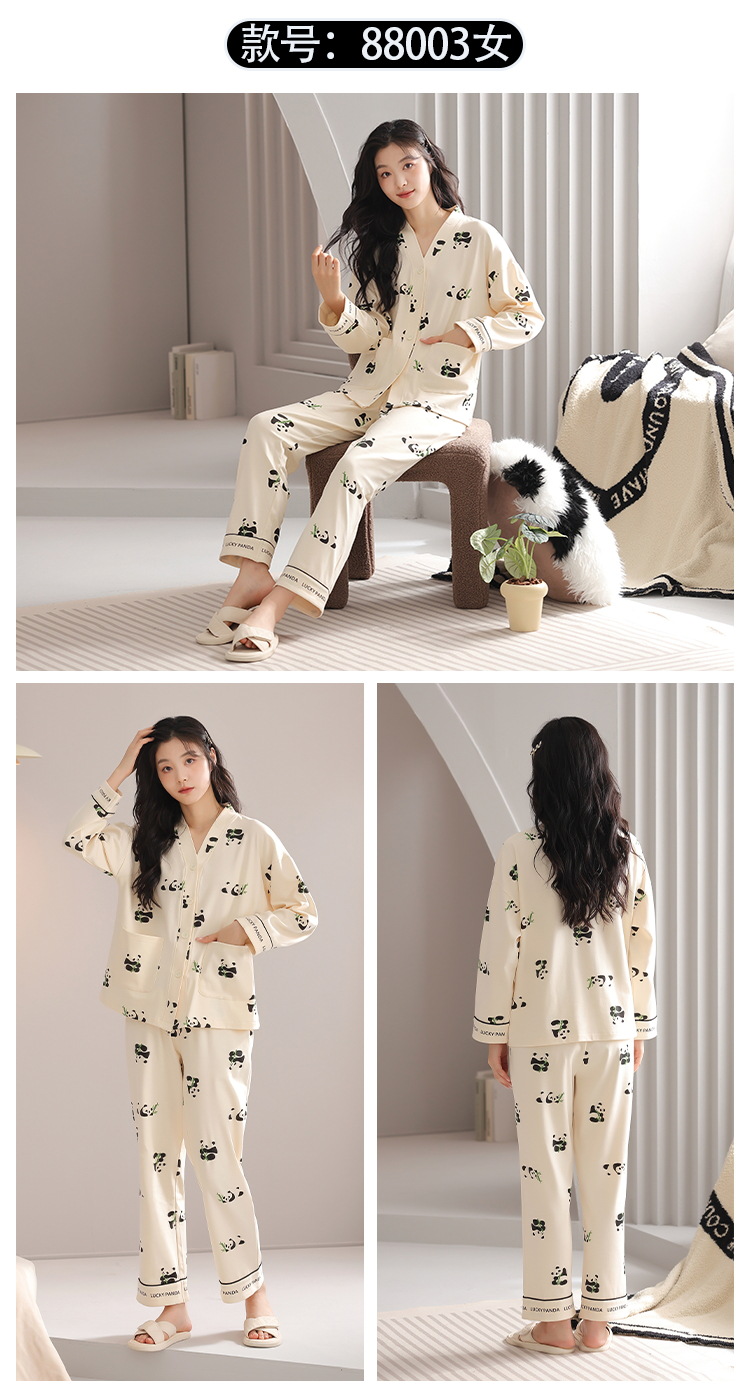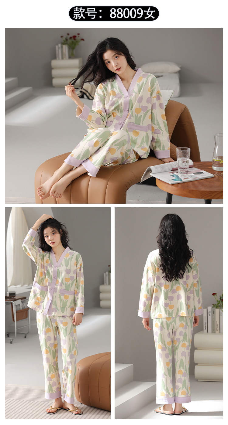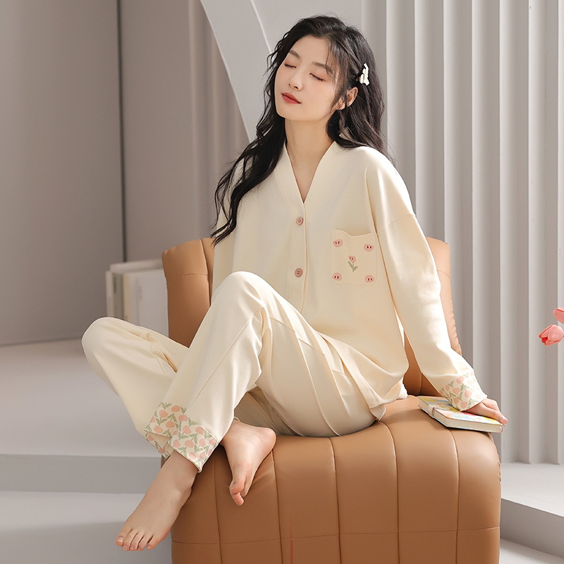 클래스 A 항균 잠옷 여성 가을 및 겨울 면 긴팔 카디건 귀여운 여성용 면 홈 의류 여성용 세트스토어 가기