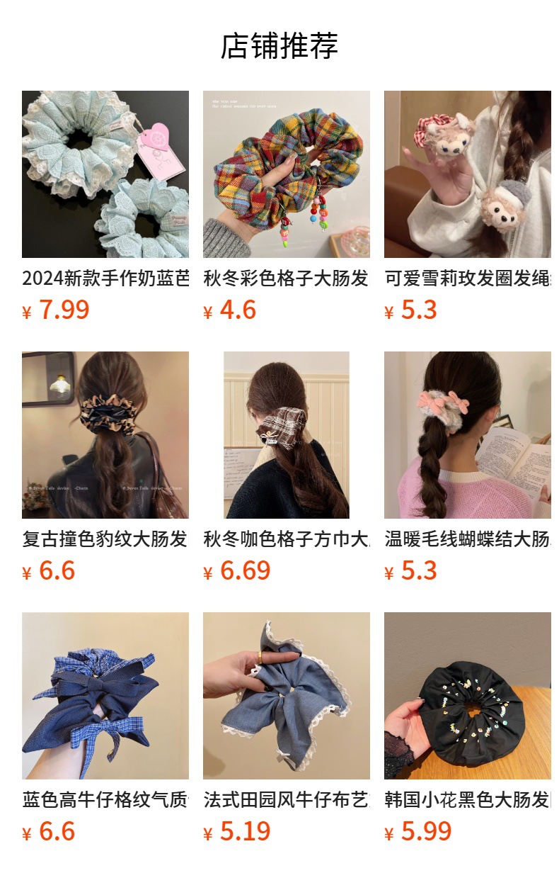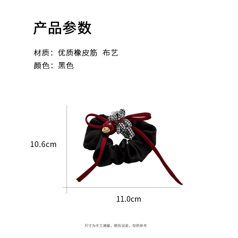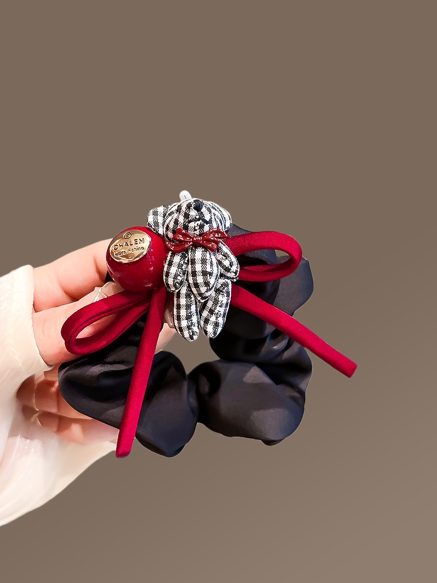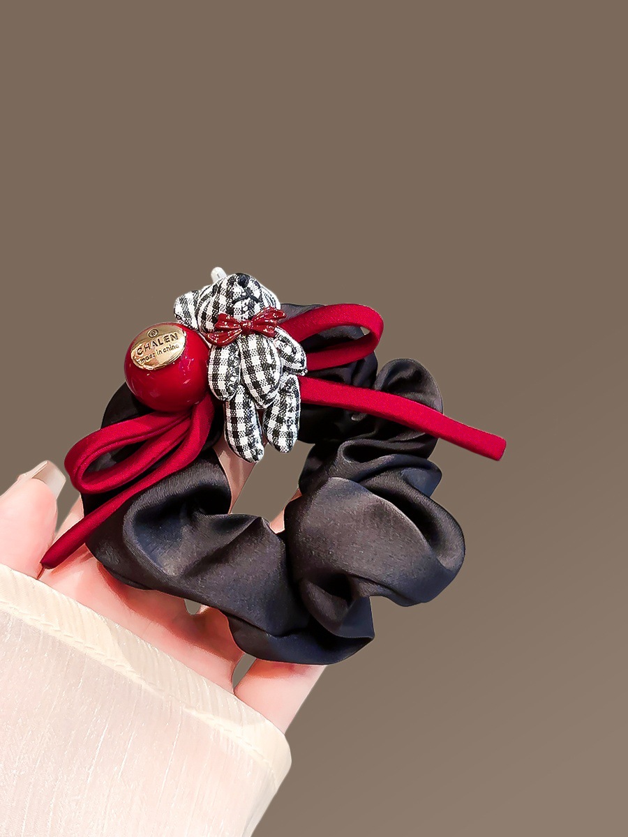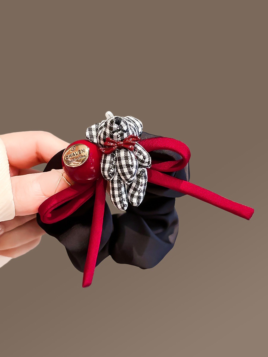 프랑스 스타일 흑백 격자 무늬 곰 활 머리 반지 여성의 2024 새로운 머리 밧줄 머리 스트랩 대형 그릇 반지 머리 로프스토어 가기