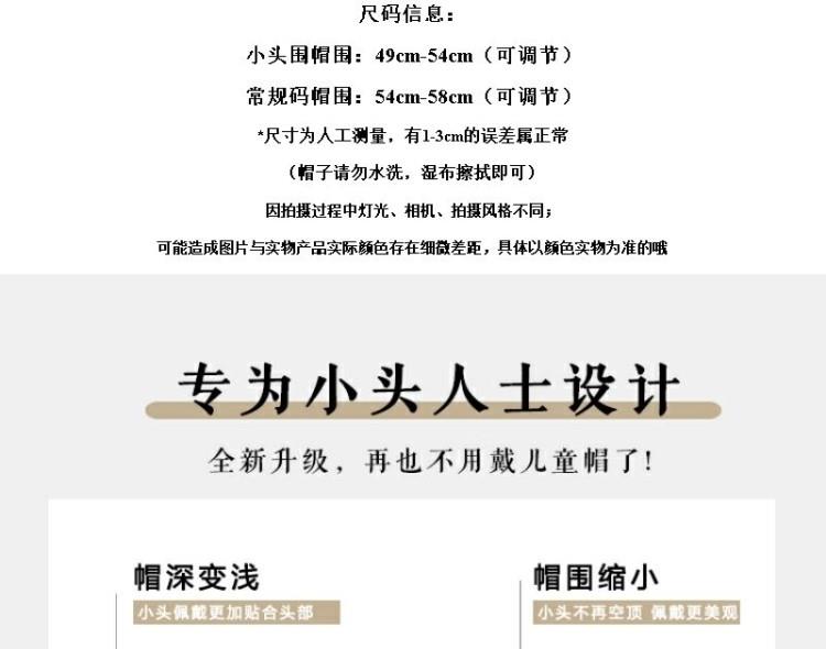 작은 머리 모자, 작은 머리 둘레, 여성용 피크 캡, 남성용 야구 모자, 작은 라이트 탑, 다용도, 트렌디, 작은 사이즈, 플랫 헤드, 여름용스토어 가기