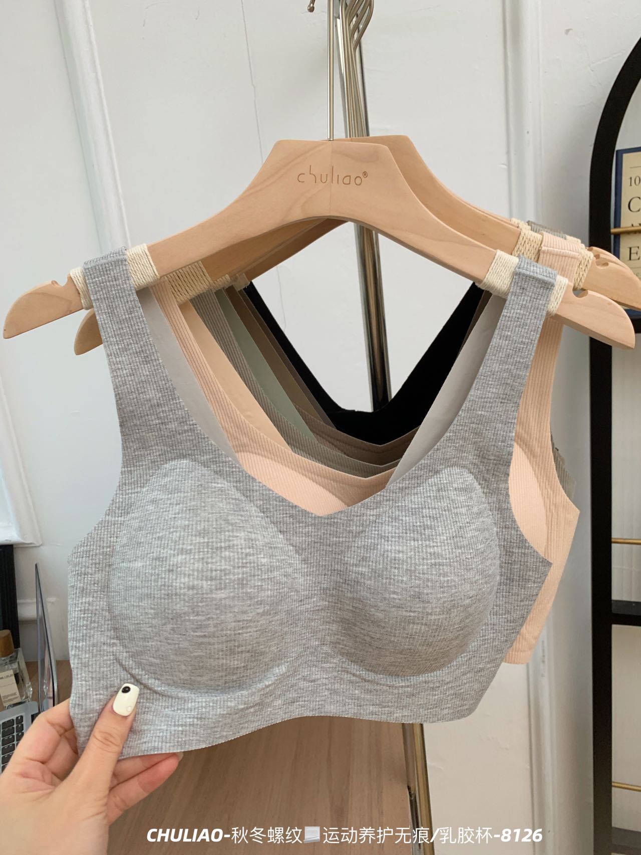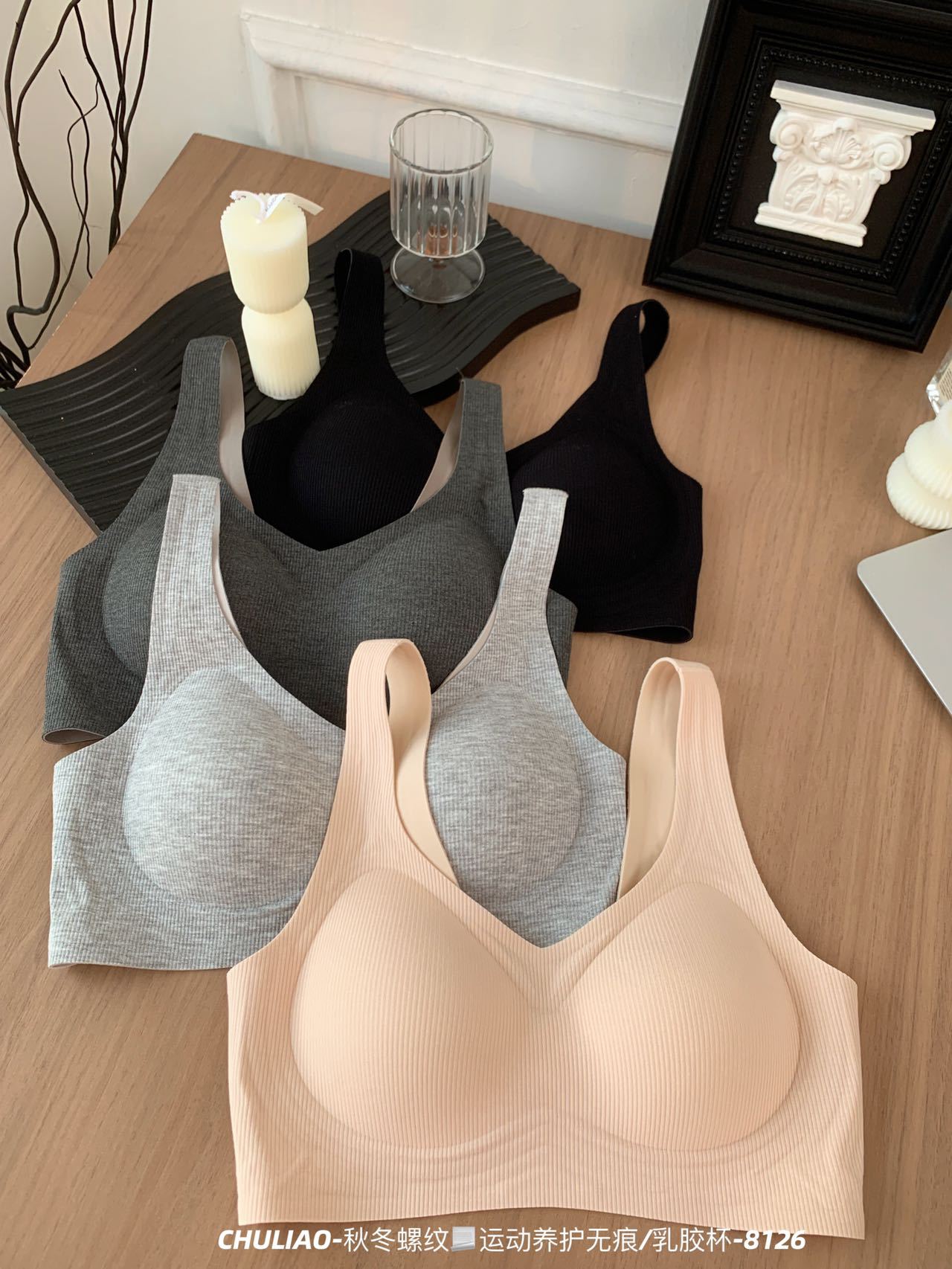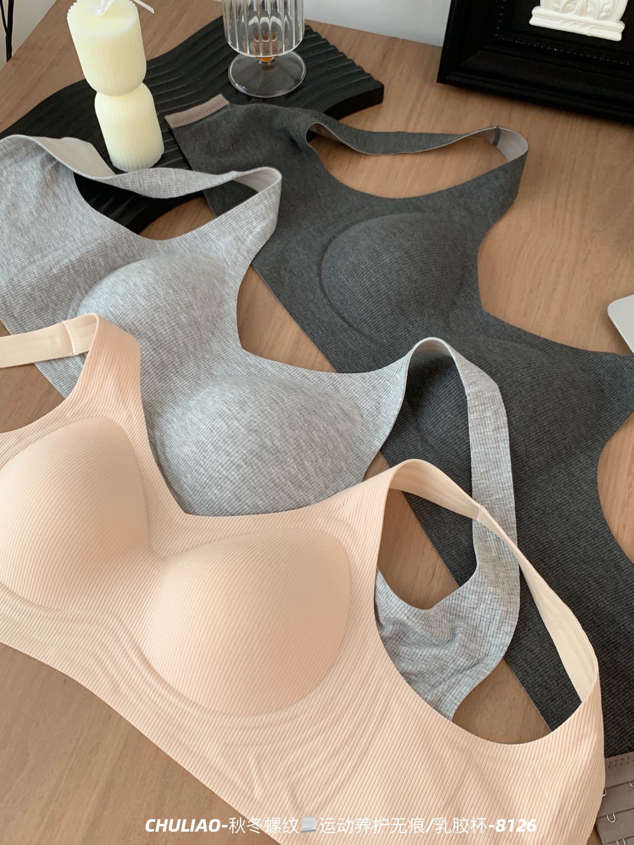 가을 겨울 여성용 스레드 라텍스 무봉제 속옷, 푸쉬업 처짐 방지, 작은 가슴, 얇고 와이어 없음, 스포츠용 편안한 브라스토어 가기