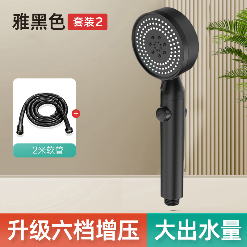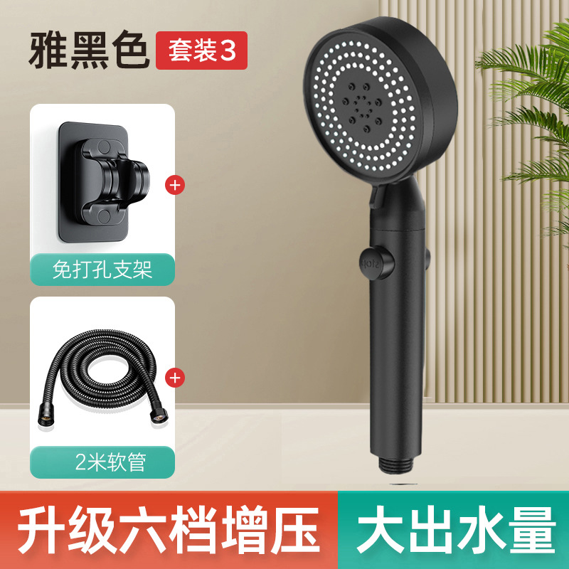 • [블랙] - 6단 슈퍼차저 샤워기 + 2m 암호화 방폭 호스 + 펀치프리 브라켓