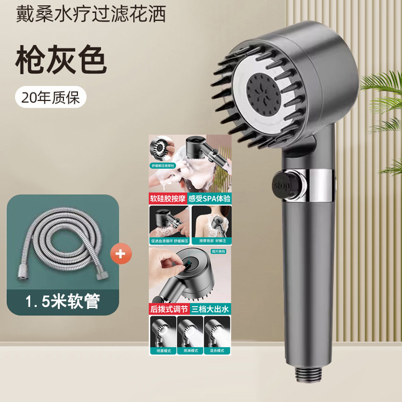• 업그레이드된 새 버전 [강력한 슈퍼차지 스킨 뷰티] 건그레이 마사지 필터 샤워 헤드 - (마사지 실리콘 브러시 포함)