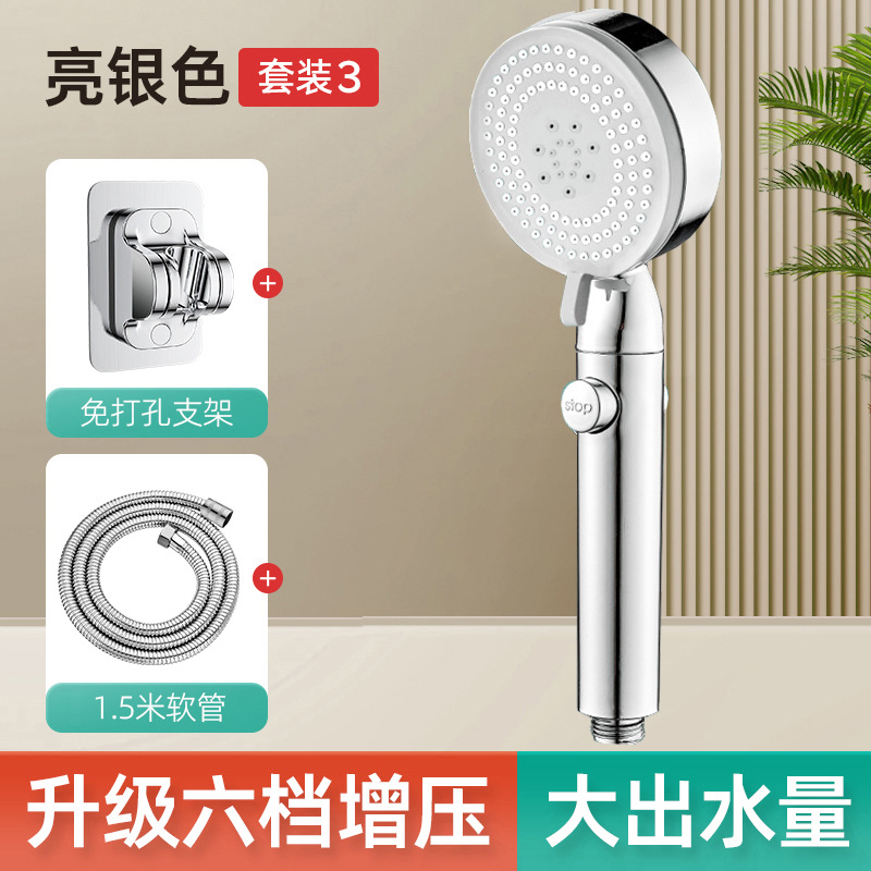 • [실버] - 6단 슈퍼차저 샤워기 + 1.5m 암호화 방폭 호스 + 펀치프리 브라켓