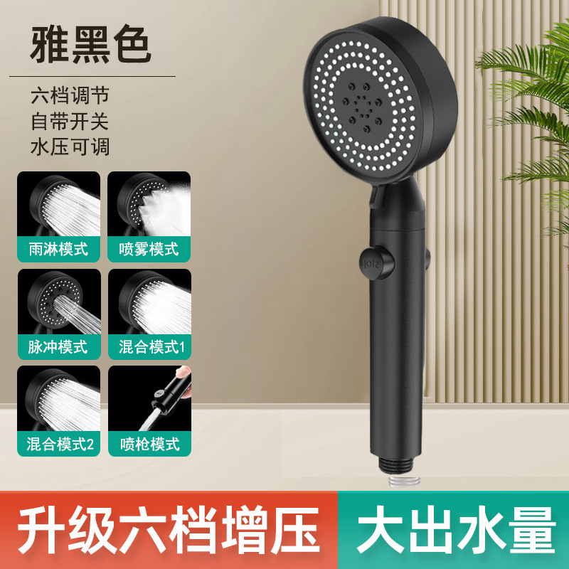 • [블랙] - 6단 슈퍼차지 대형 물 배출 샤워 헤드