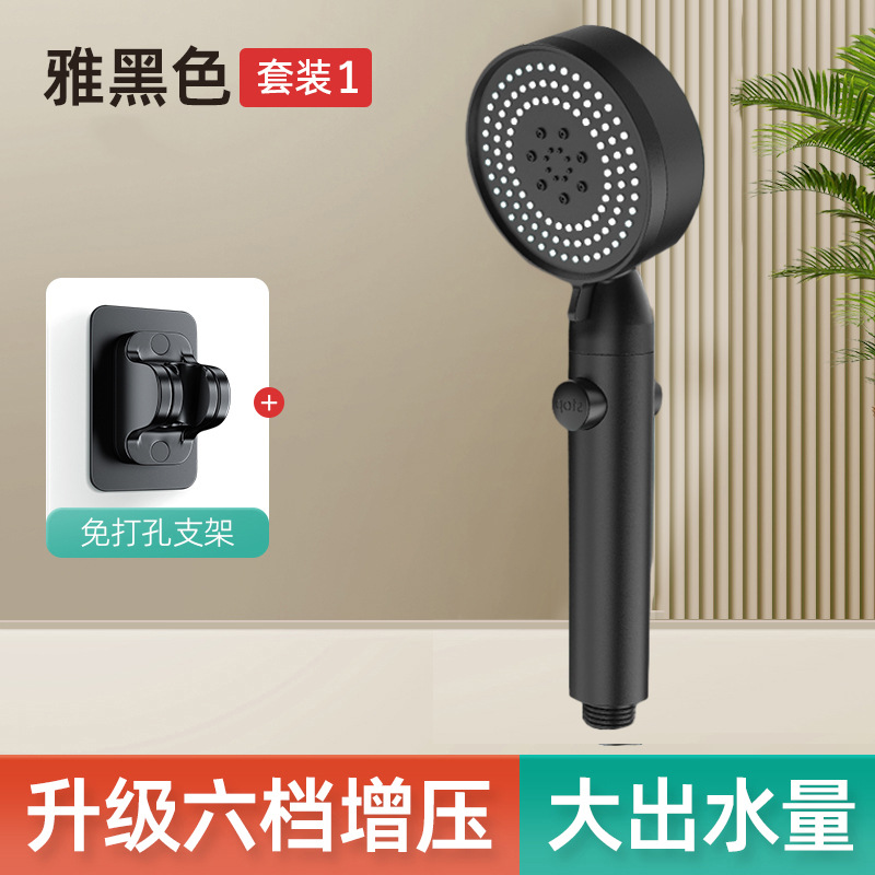 • [블랙] - 6단 슈퍼차저 샤워기 + 1.5m 암호화 방폭 호스 + 펀치프리 브라켓