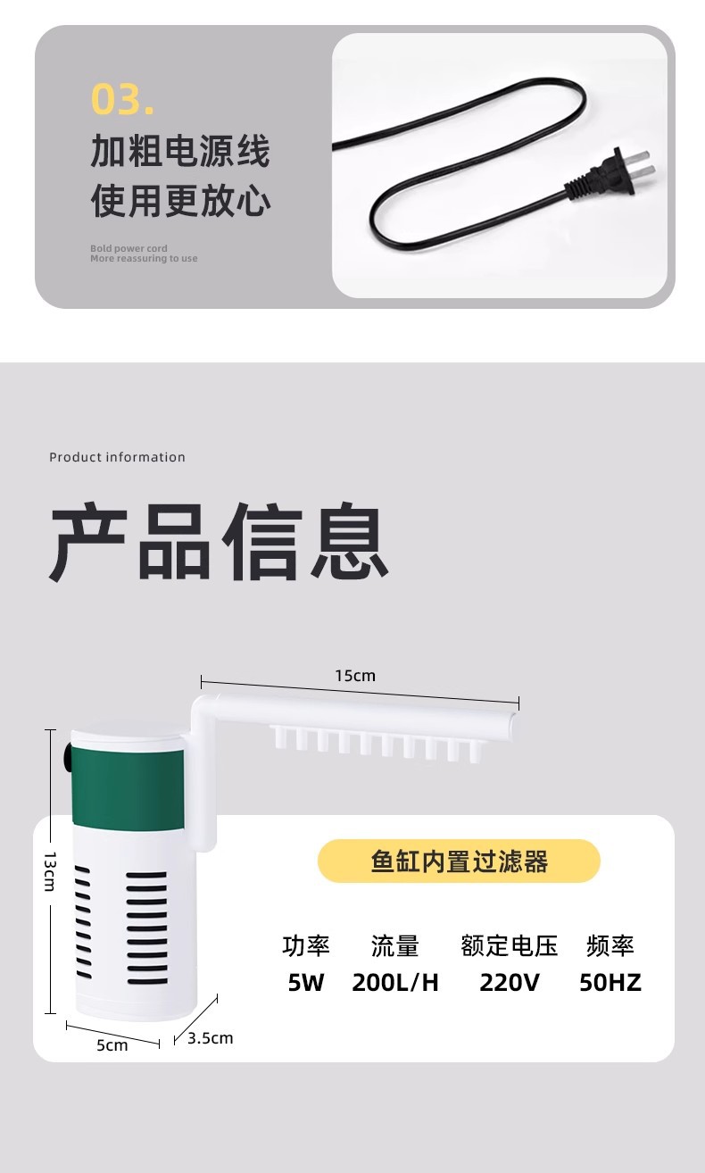 • 3-in-1 5w 에너지 절약 모델(필터링/산소화/파도)