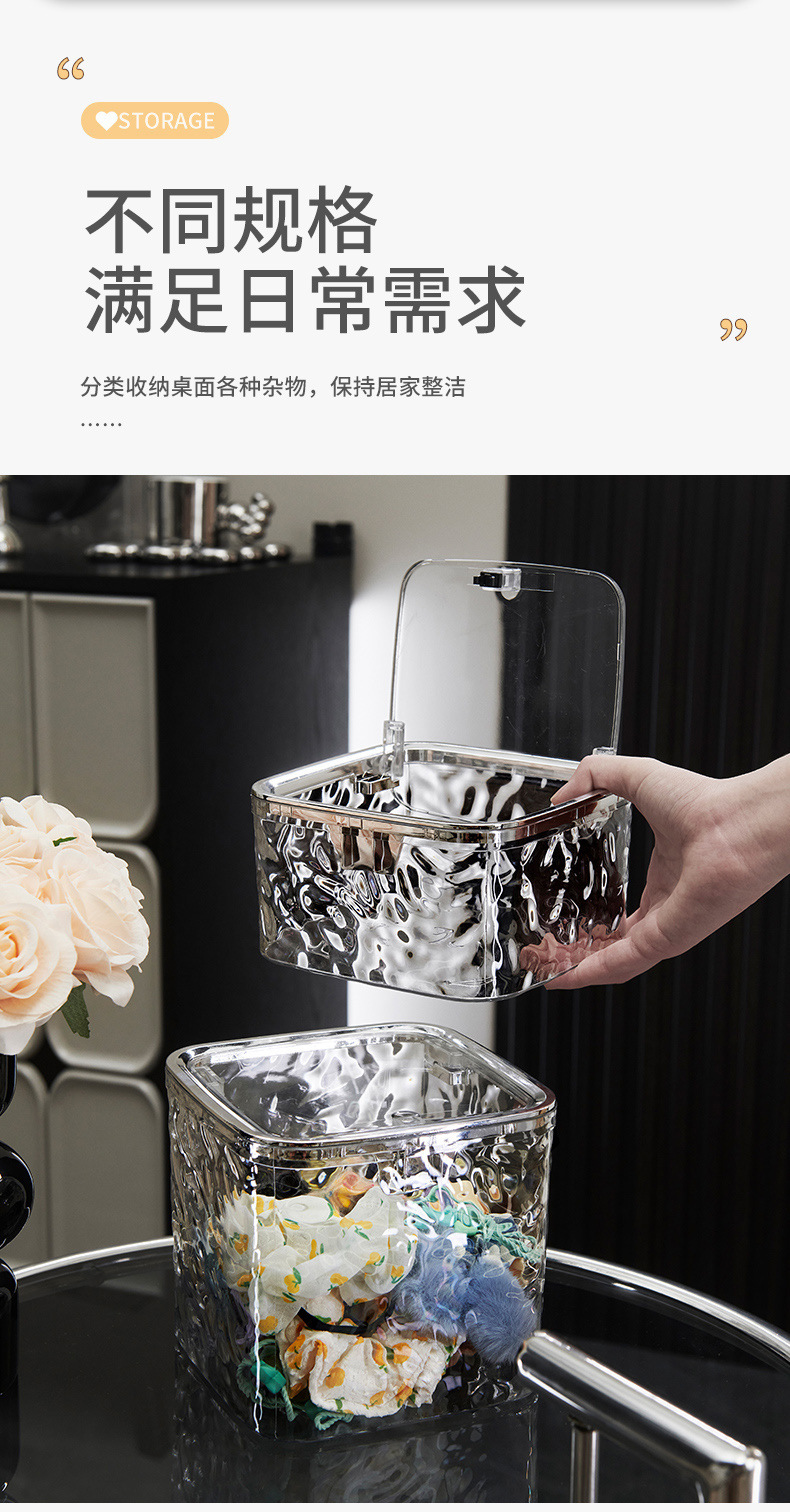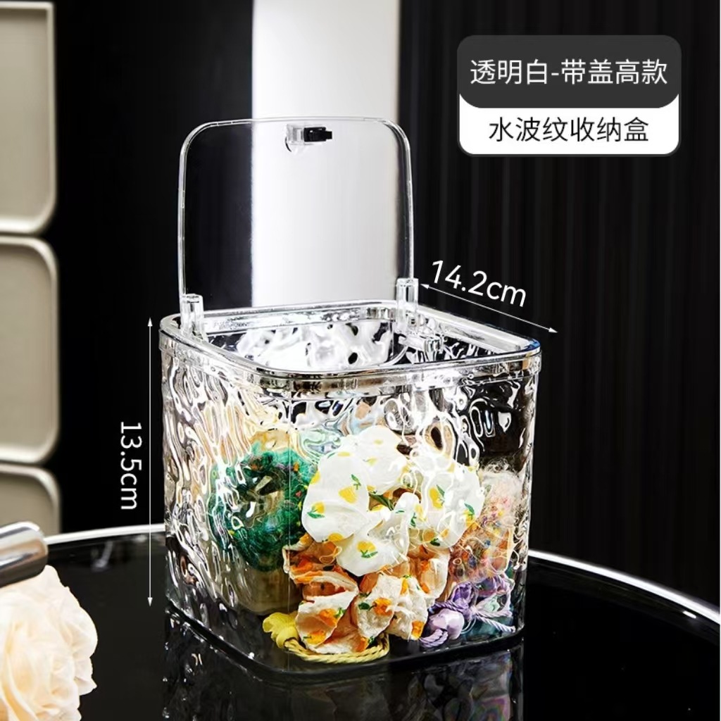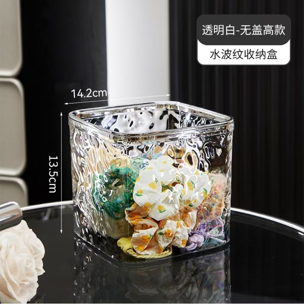 빙하 패턴 데스크탑 휴지통 홈 고 가치 거실 커피 테이블 라이트 럭셔리 투명 미니 크리에이티브 스토리지 박스 뚜껑스토어 가기