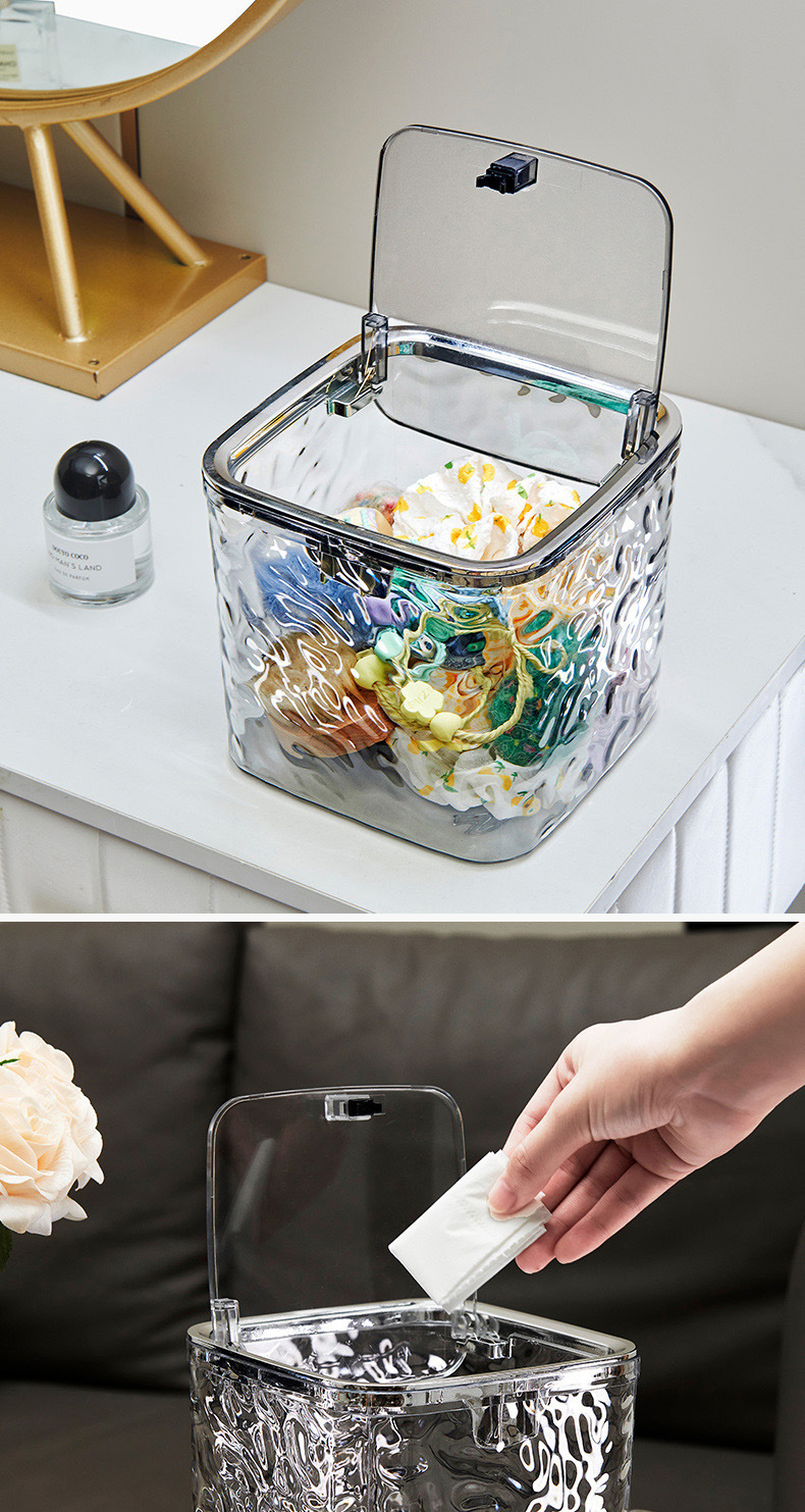 빙하 패턴 데스크탑 휴지통 홈 고 가치 거실 커피 테이블 라이트 럭셔리 투명 미니 크리에이티브 스토리지 박스 뚜껑