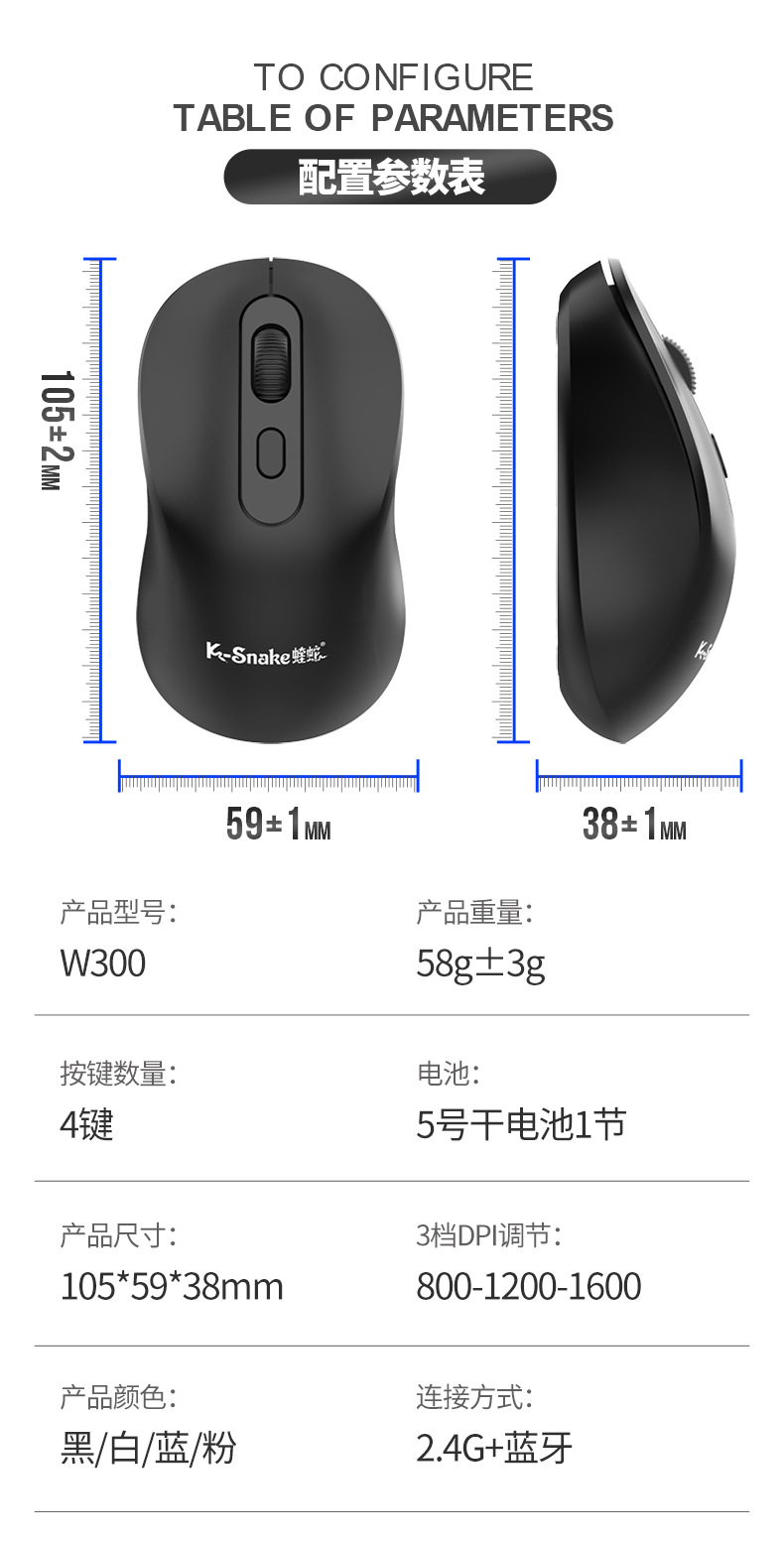 Viper W300 무선 2.4G 블루투스 마우스 듀얼 모드 노트북 범용 절전 사업 사무실 4D 마우스스토어 가기