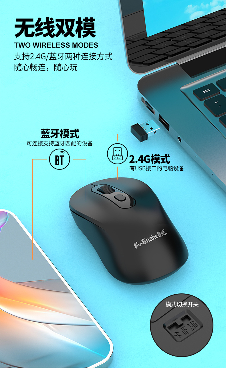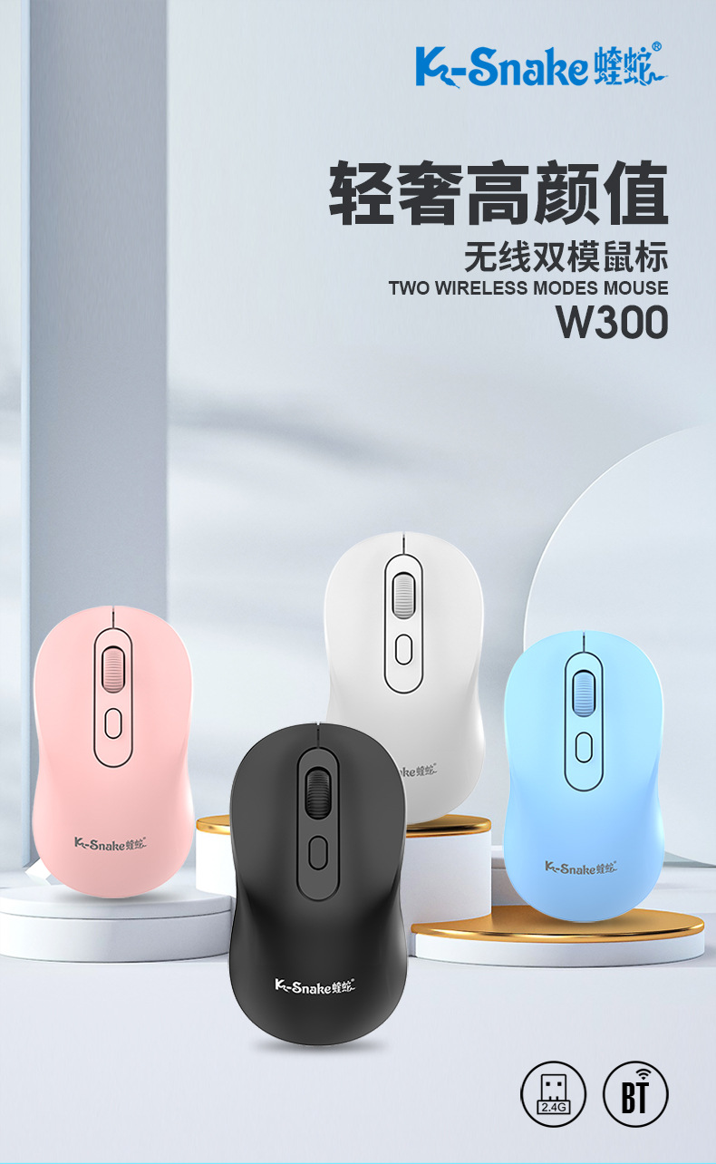 Viper W300 무선 2.4G 블루투스 마우스 듀얼 모드 노트북 범용 절전 사업 사무실 4D 마우스