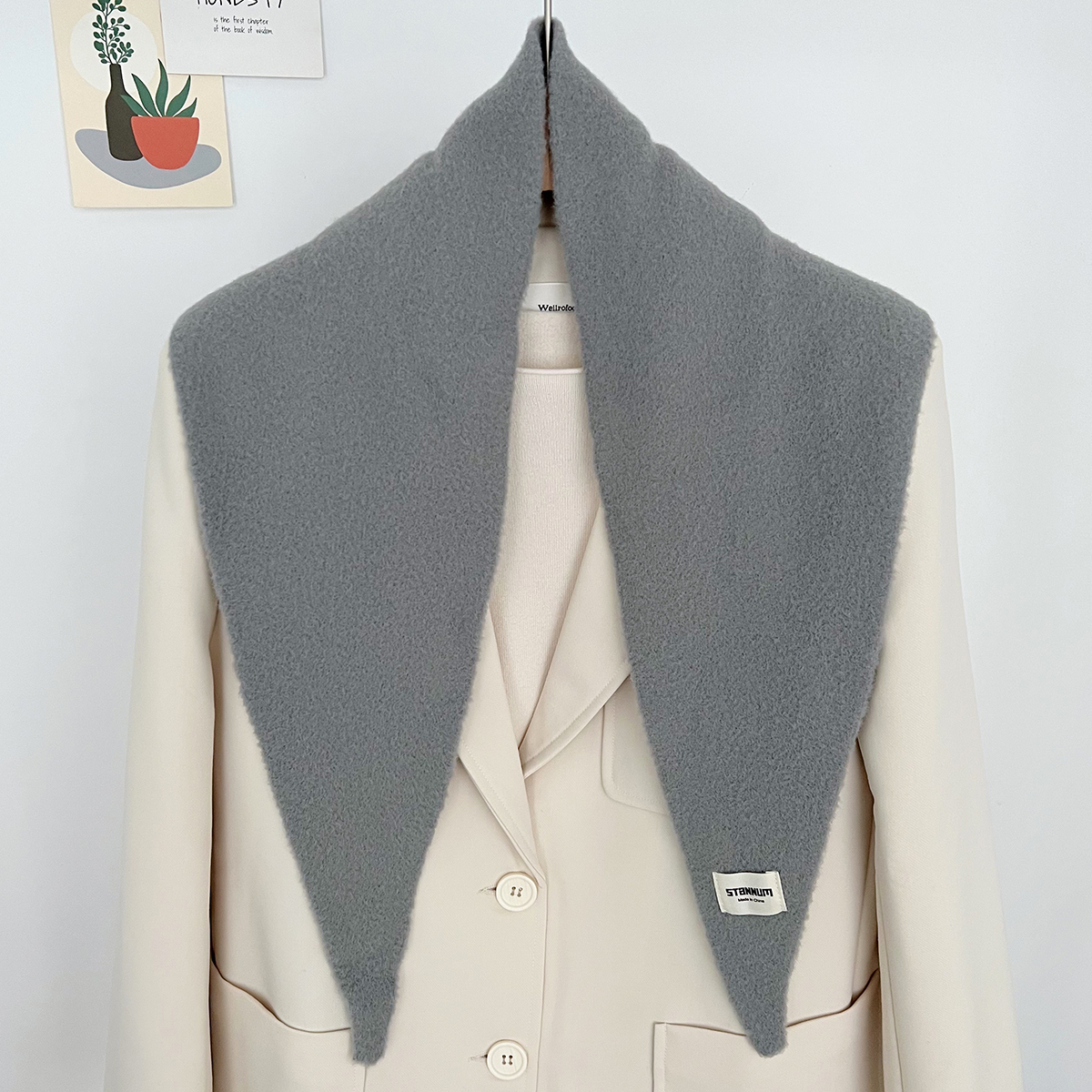 가을 겨울용 두꺼운 삼각 스카프, 한국 스타일 다용도 라벨 순색 숄, 겨울 방풍 보온 스카프스토어 가기
