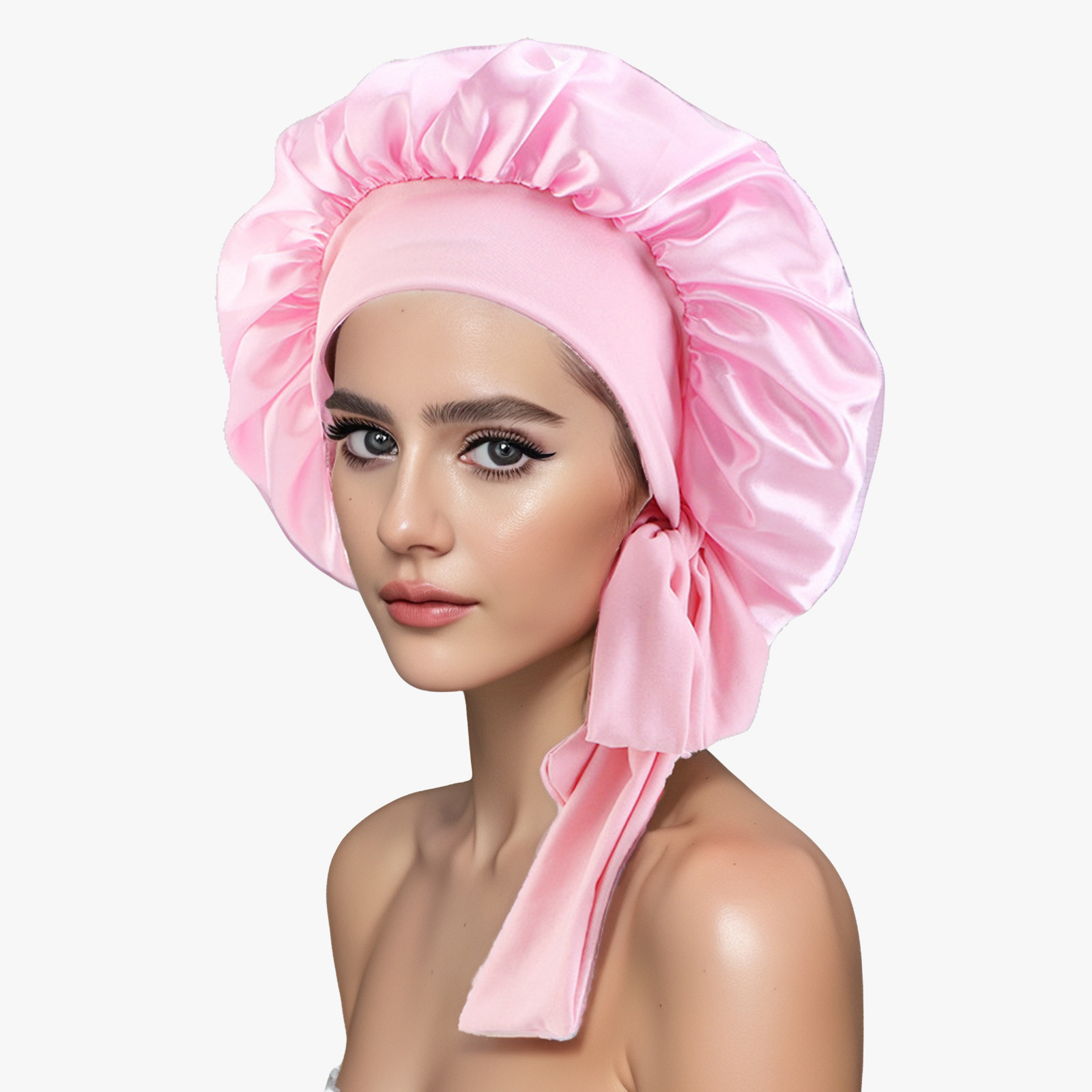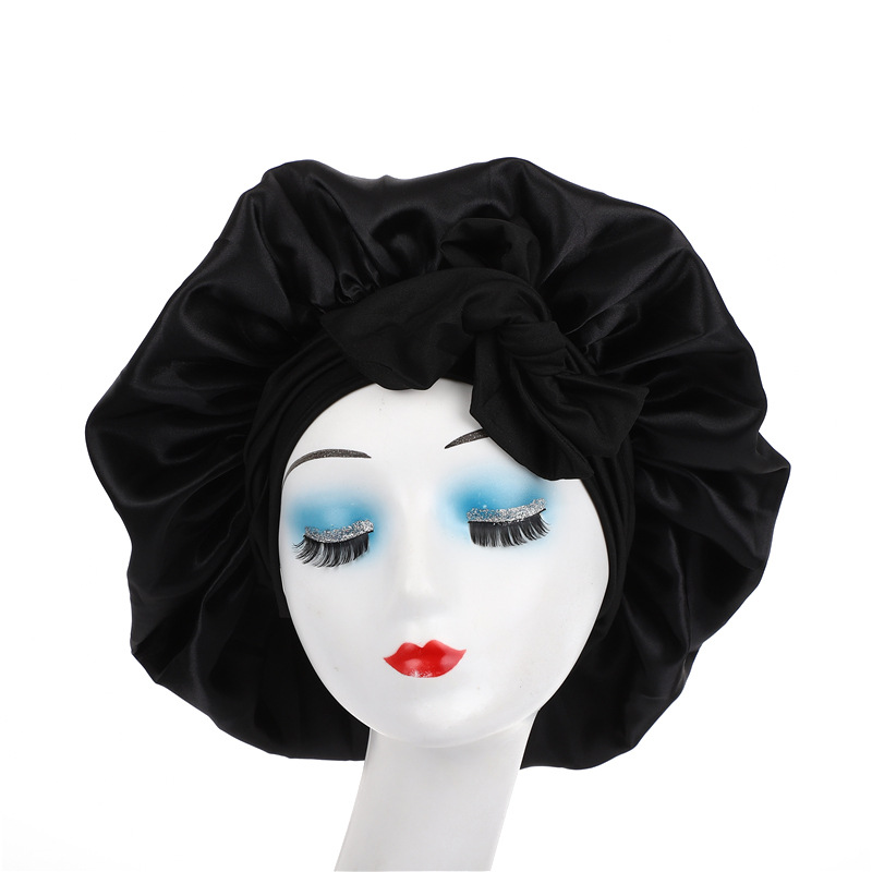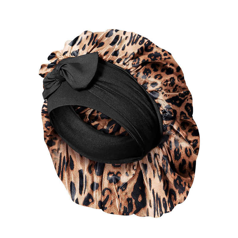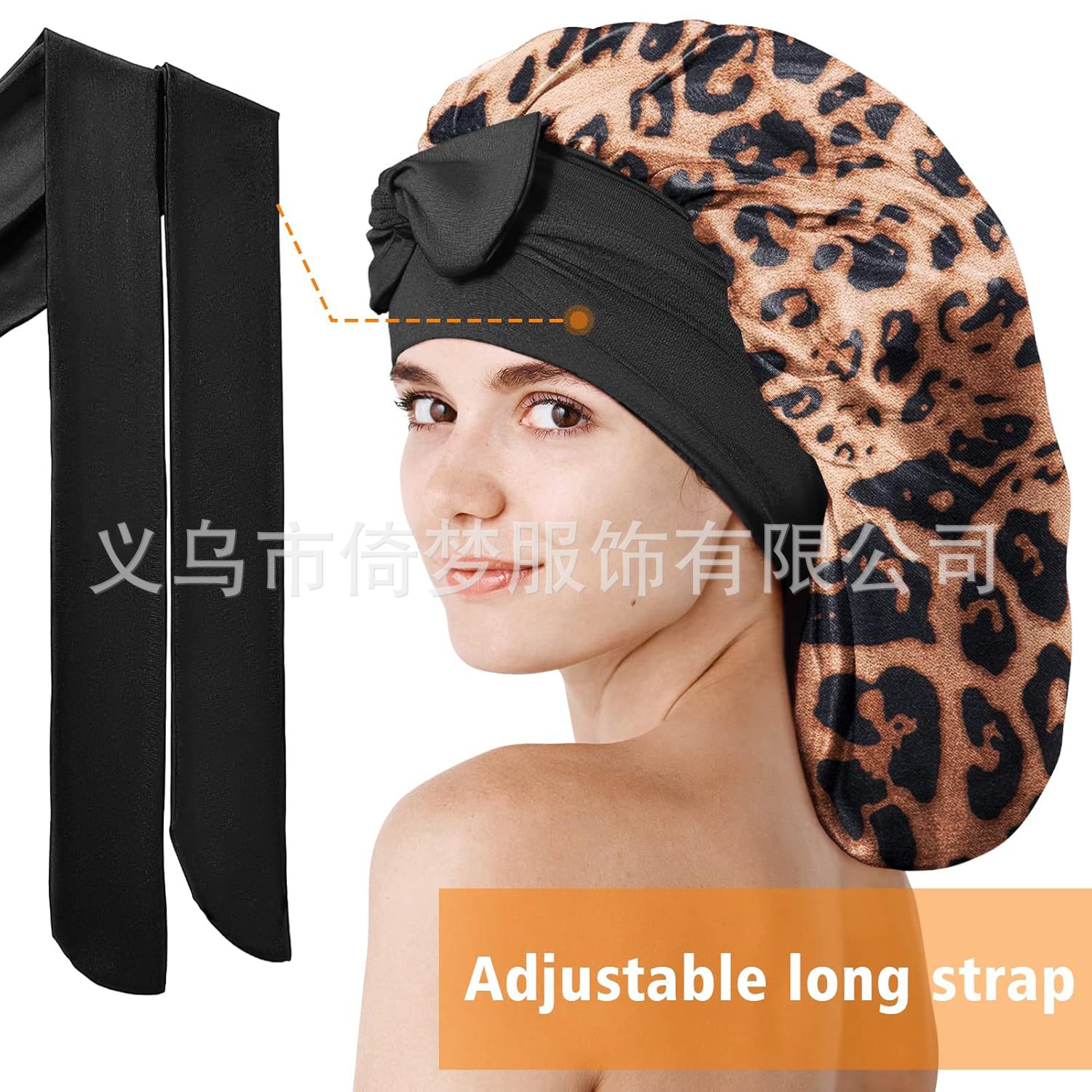 아마존 새로운 스트레치 레오파드 리본 나이트캡 활 모조 실크 라운드 캡 뷰티 살롱 챙이 넓은 헤어 케어 모자