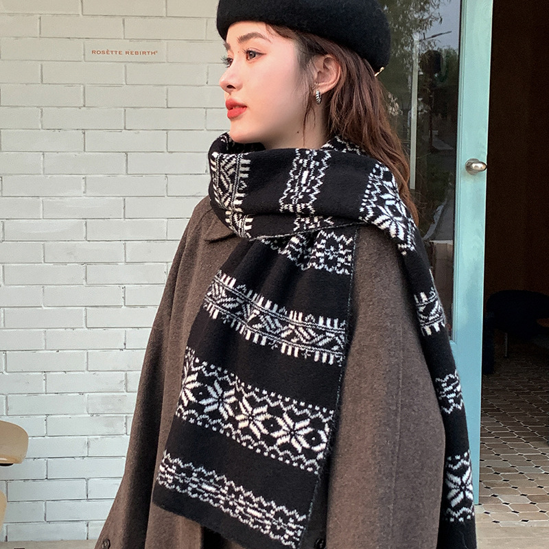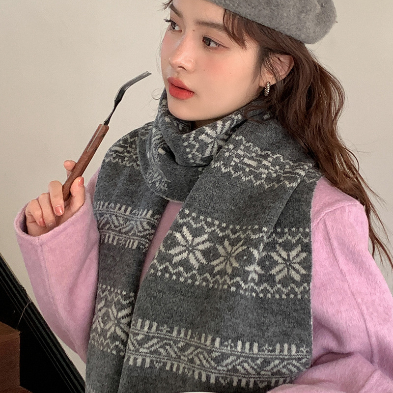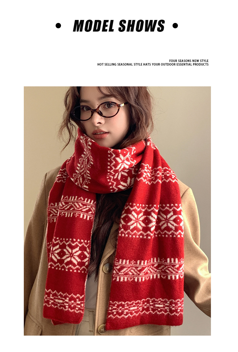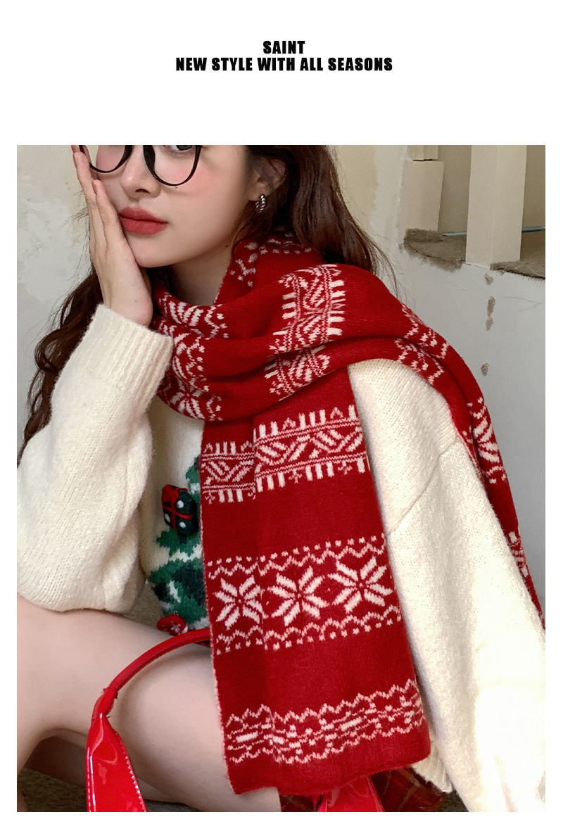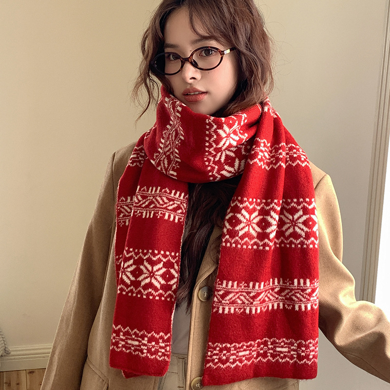 붉은 니트 스카프 여자 가을 겨울 한국 스타일 분위기 올매치 두꺼운 따뜻한 크리스마스 선물 스카프 목도리스토어 가기