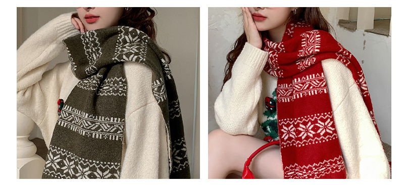 붉은 니트 스카프 여자 가을 겨울 한국 스타일 분위기 올매치 두꺼운 따뜻한 크리스마스 선물 스카프 목도리